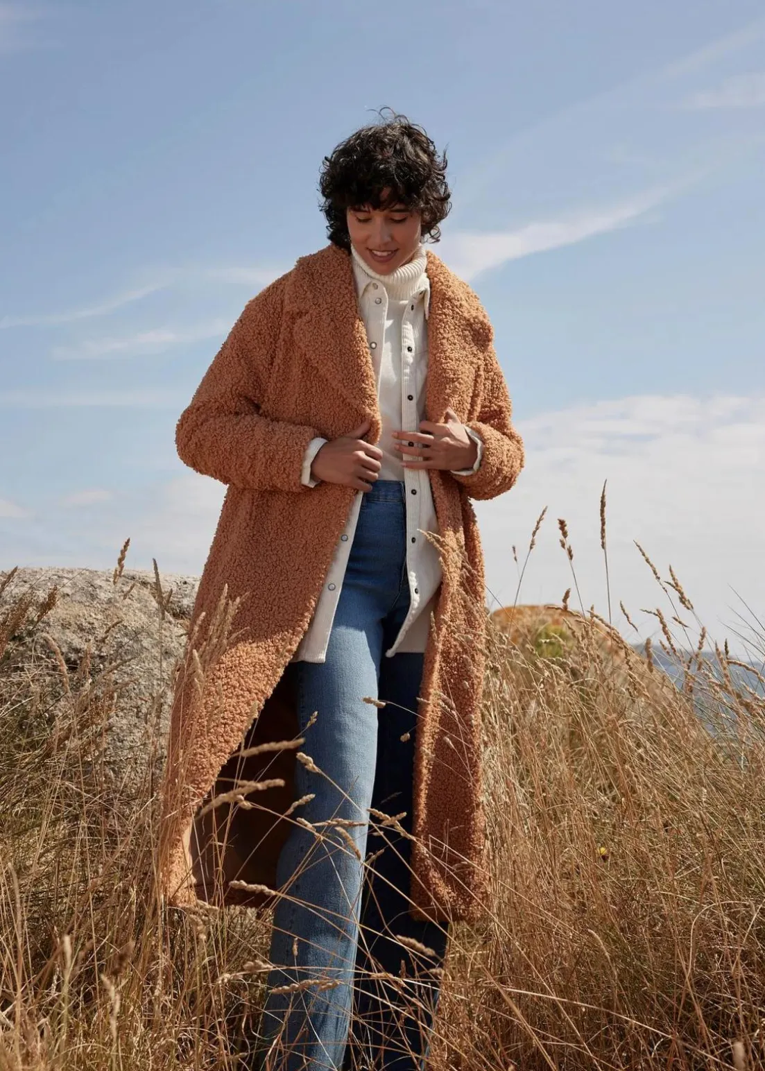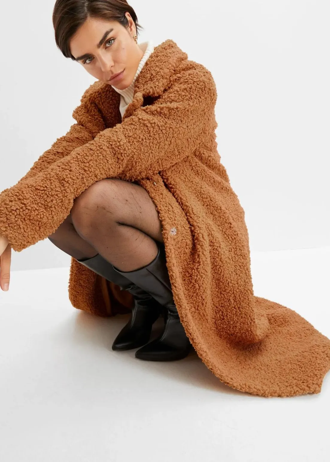 Oversized Mantel mit flauschigem Teddyfell