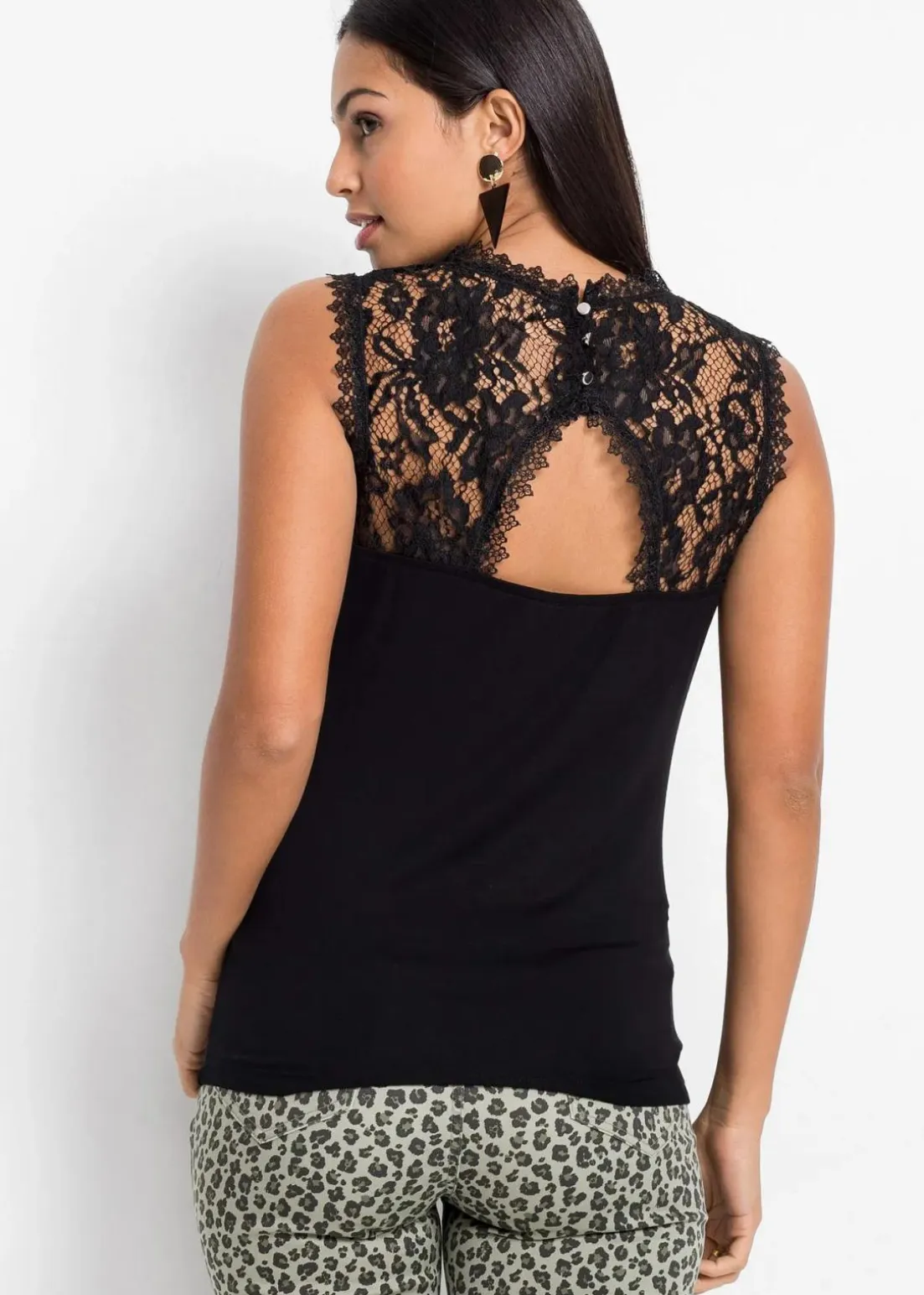 Körperbetont geschnittenes Top mit Spitze und rückwärtigem Knopfverschluss