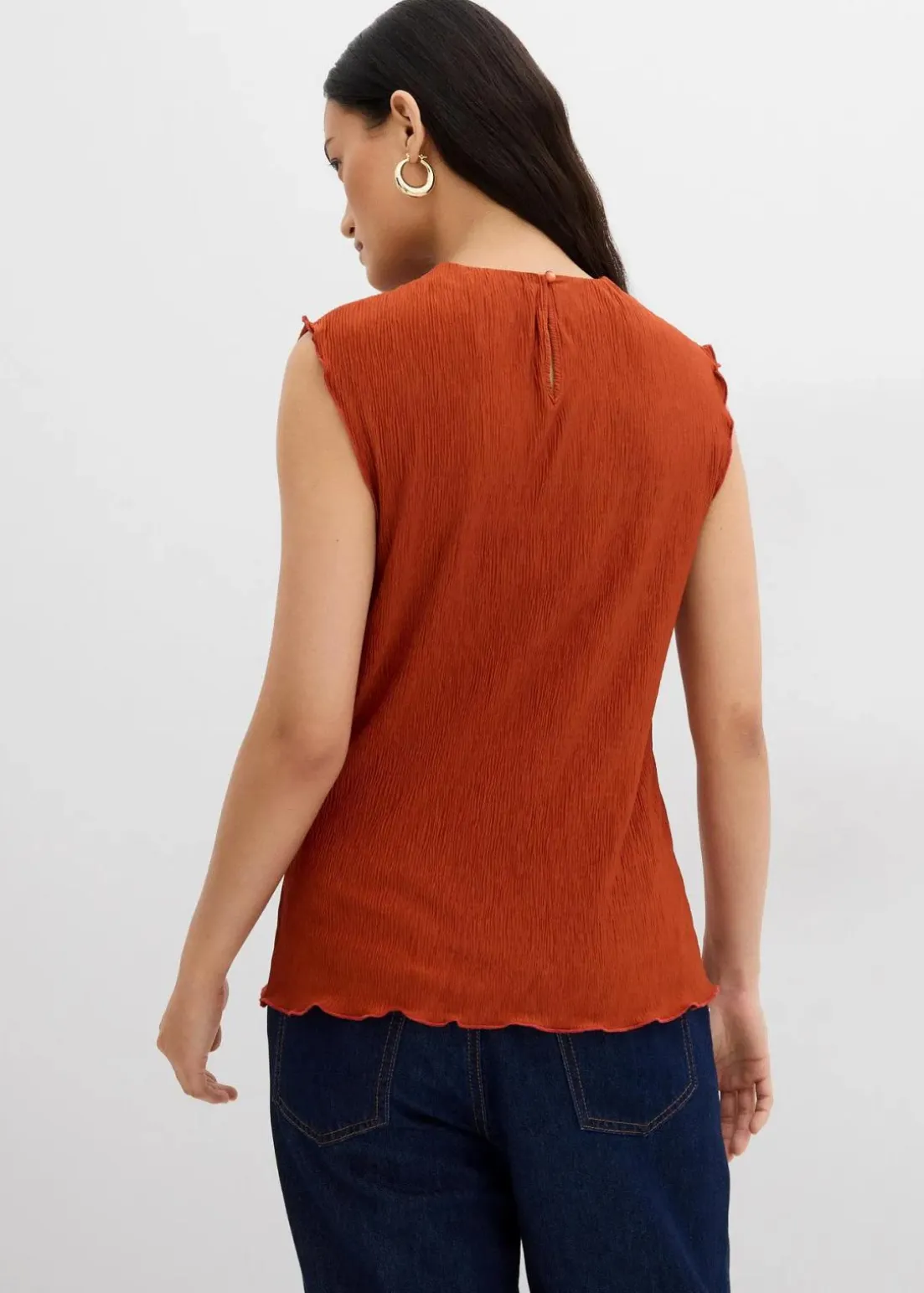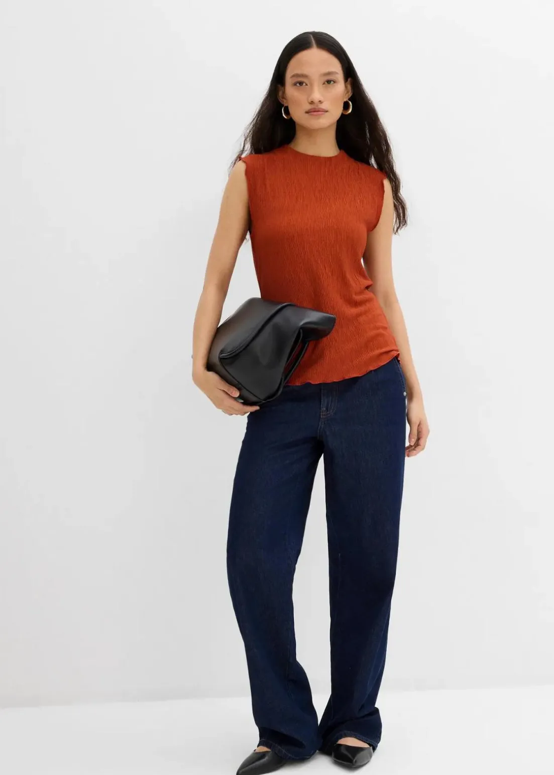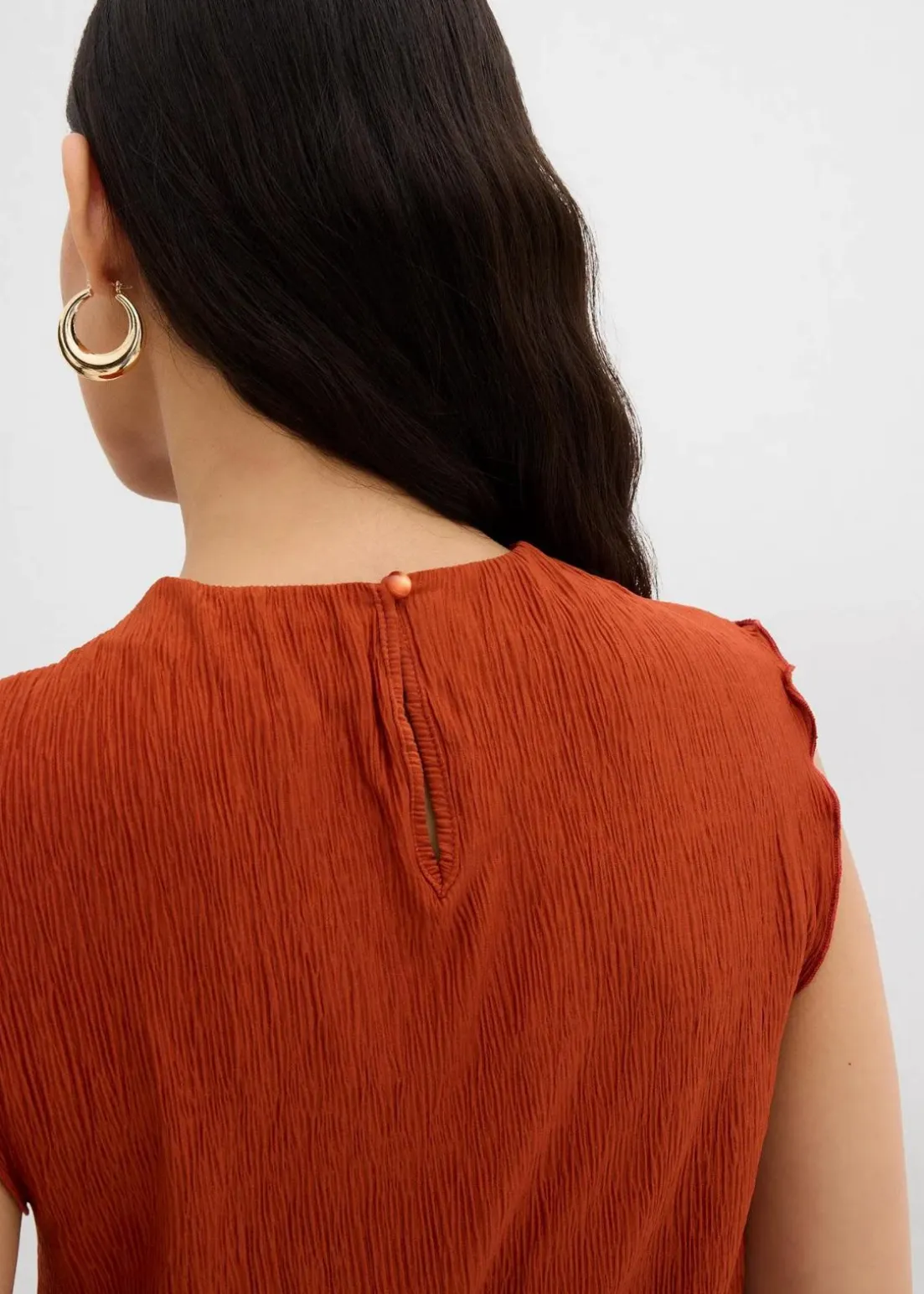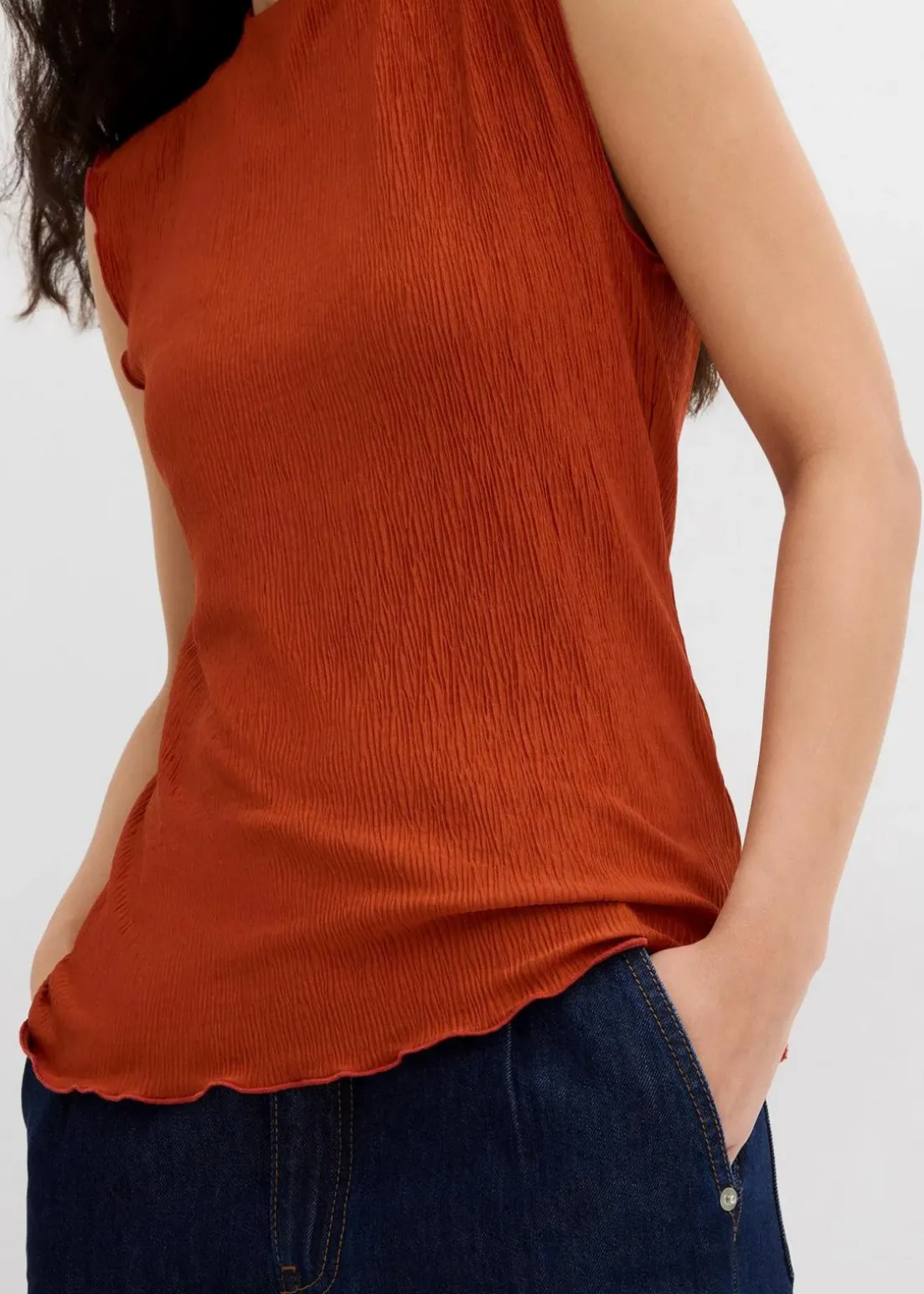 Eng anliegendes Top mit Textur mit Rundhalsausschnitt sowie einem Schlüssellochausschnitt am Rücken