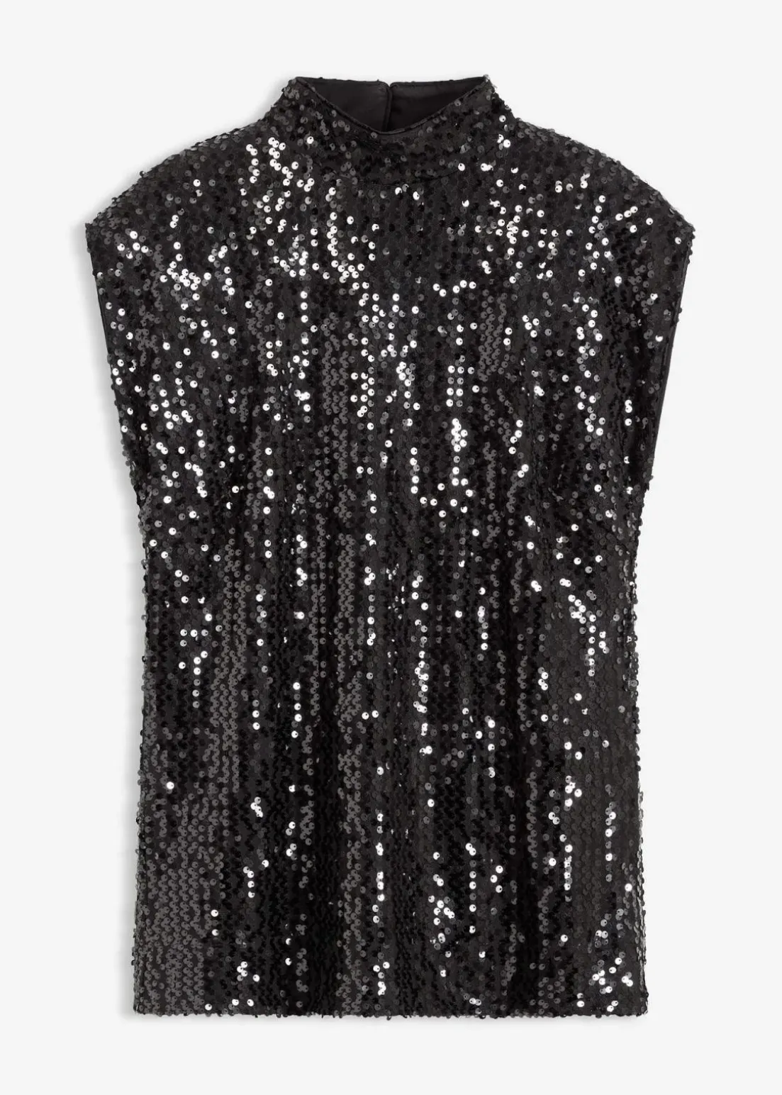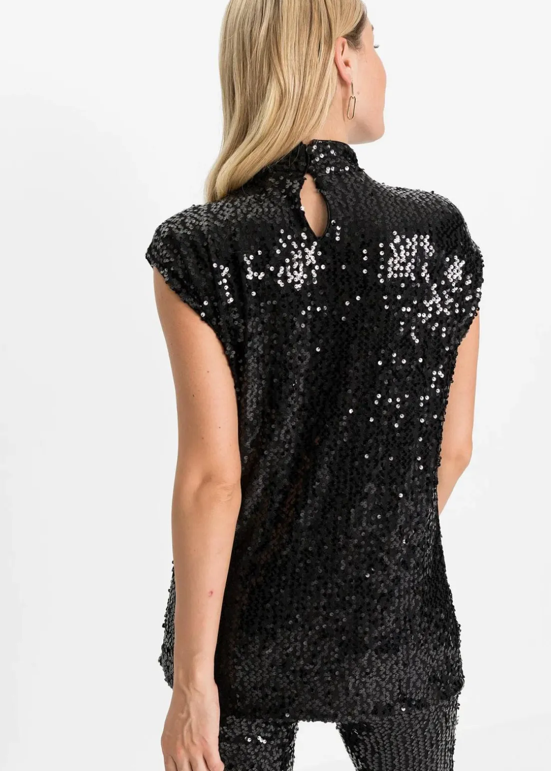 Festlich und modern: Pailletten-Top mit Kragen und trendigen Schultern