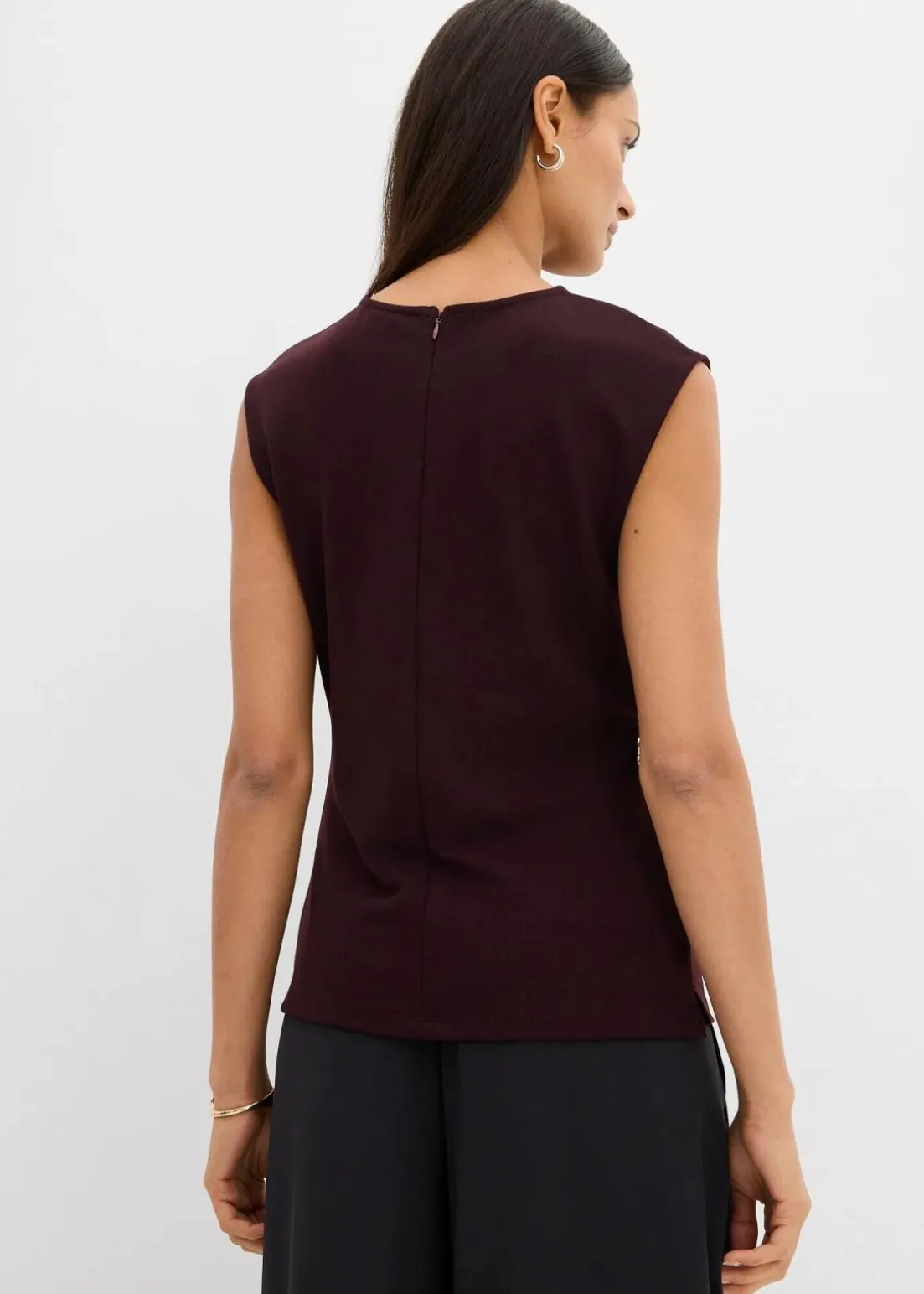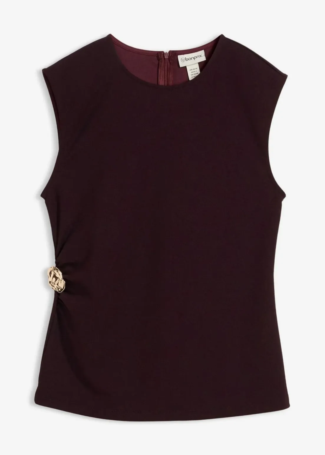 Ärmelloses Top mit Taillenfokus und Zierschnalle in der Taille. Verdeckter Reißverschluss hinten.