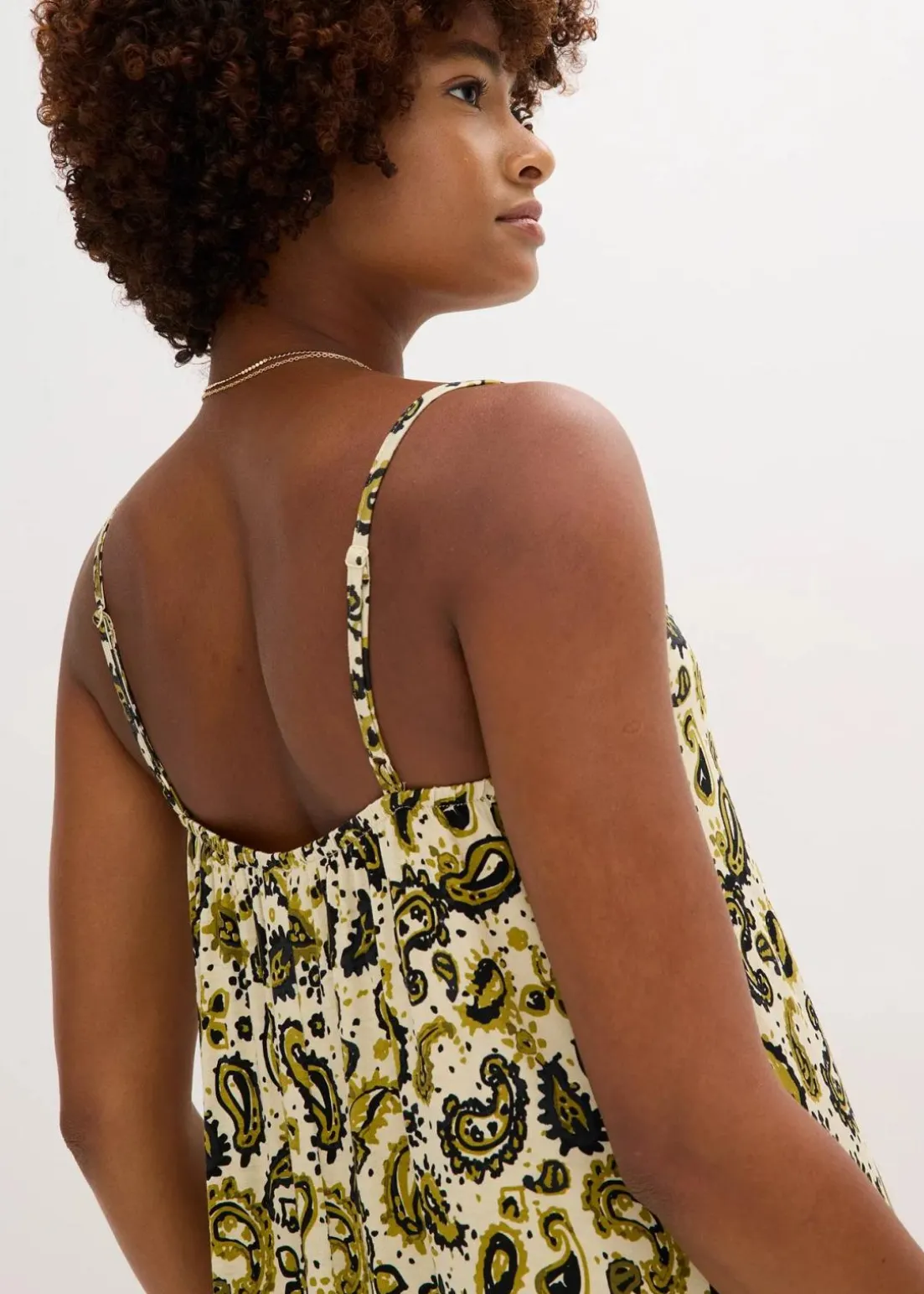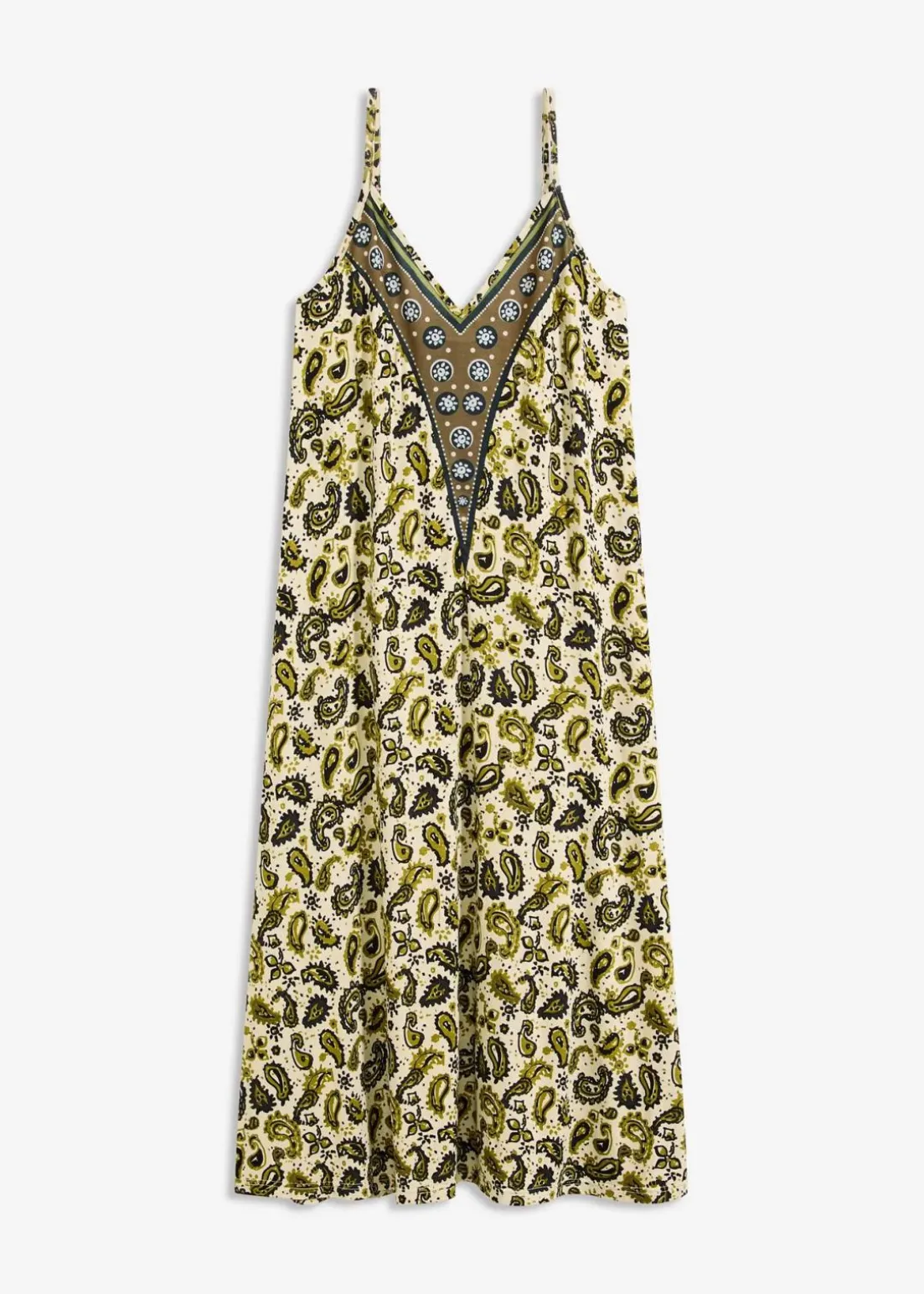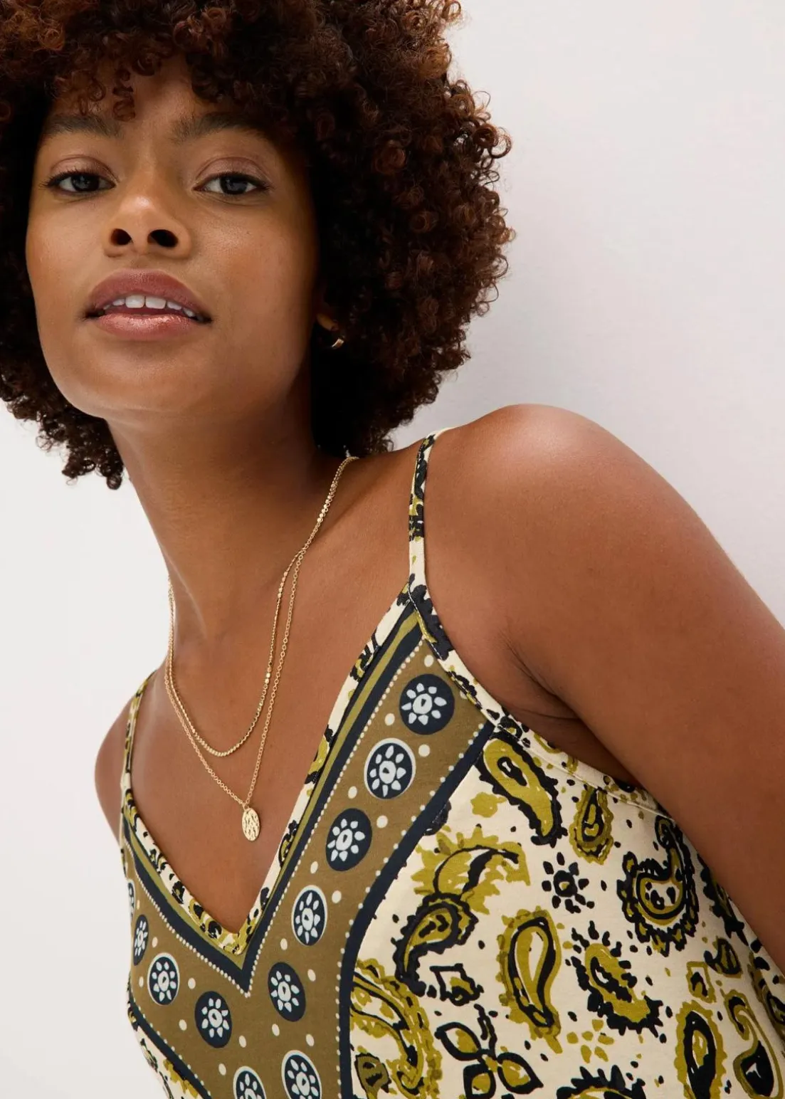 sommerliches Trägerkleid aus softem Viskose-Mix mit Spaghetti-Trägern und tiefem V-Ausschnitt vorne