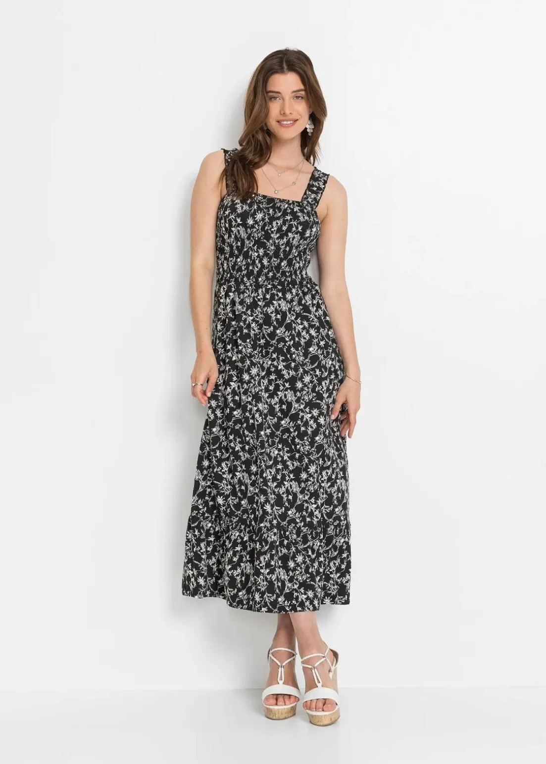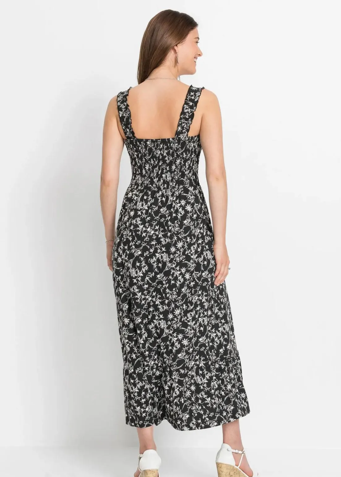 Modernes mittellanges Kleid mit Smokdetails und Volant