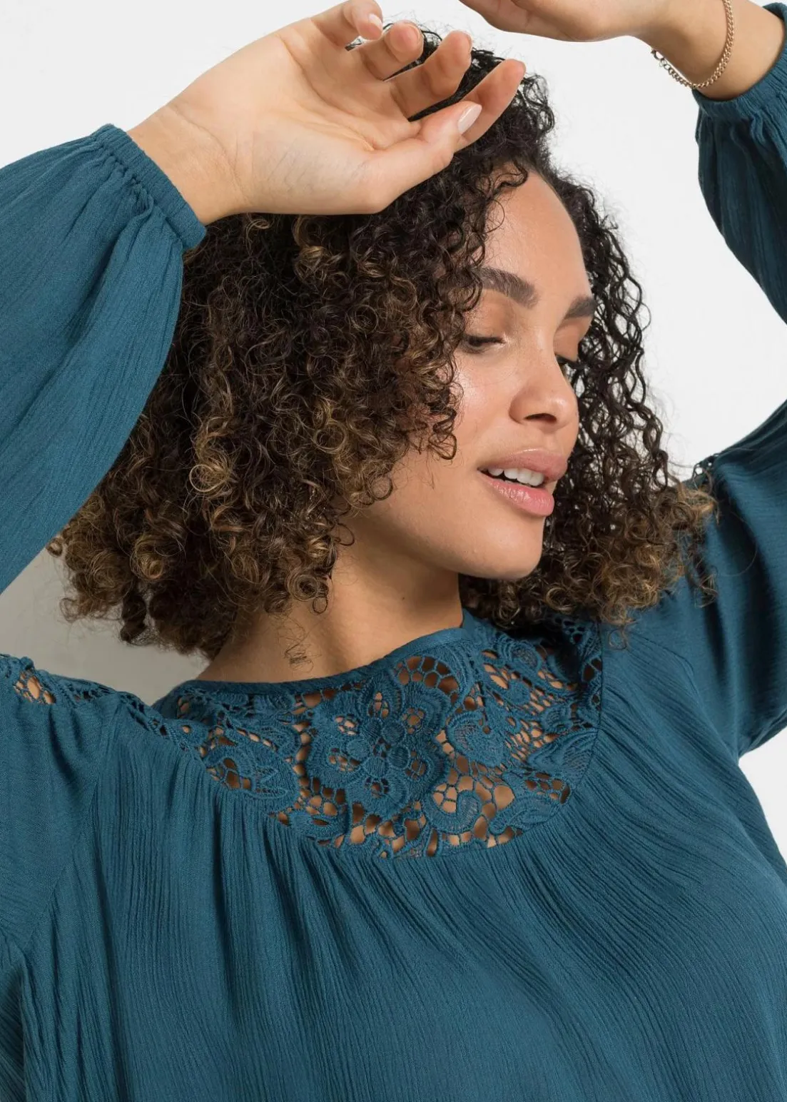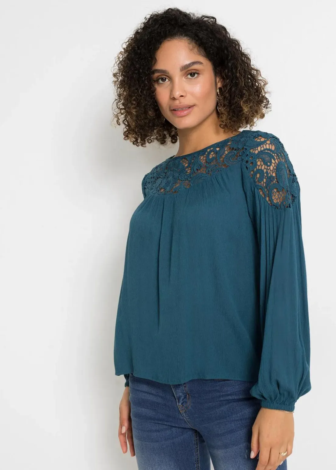 Feminine Tunika mit Spitze und Ballonärmeln