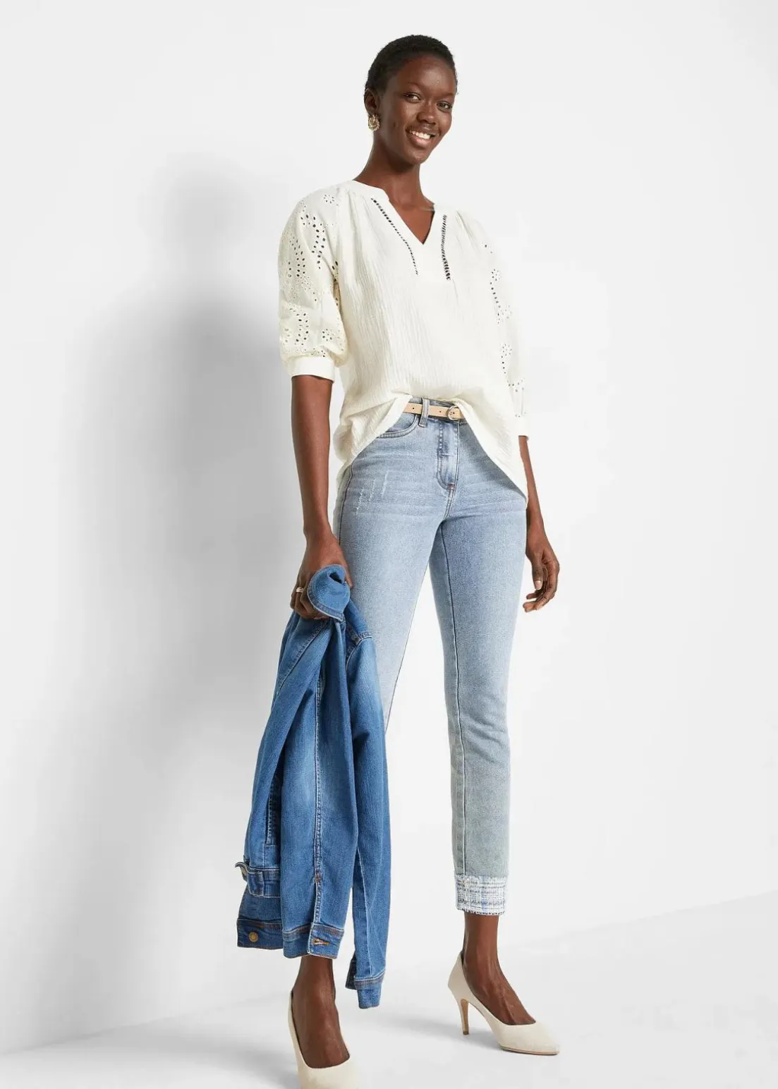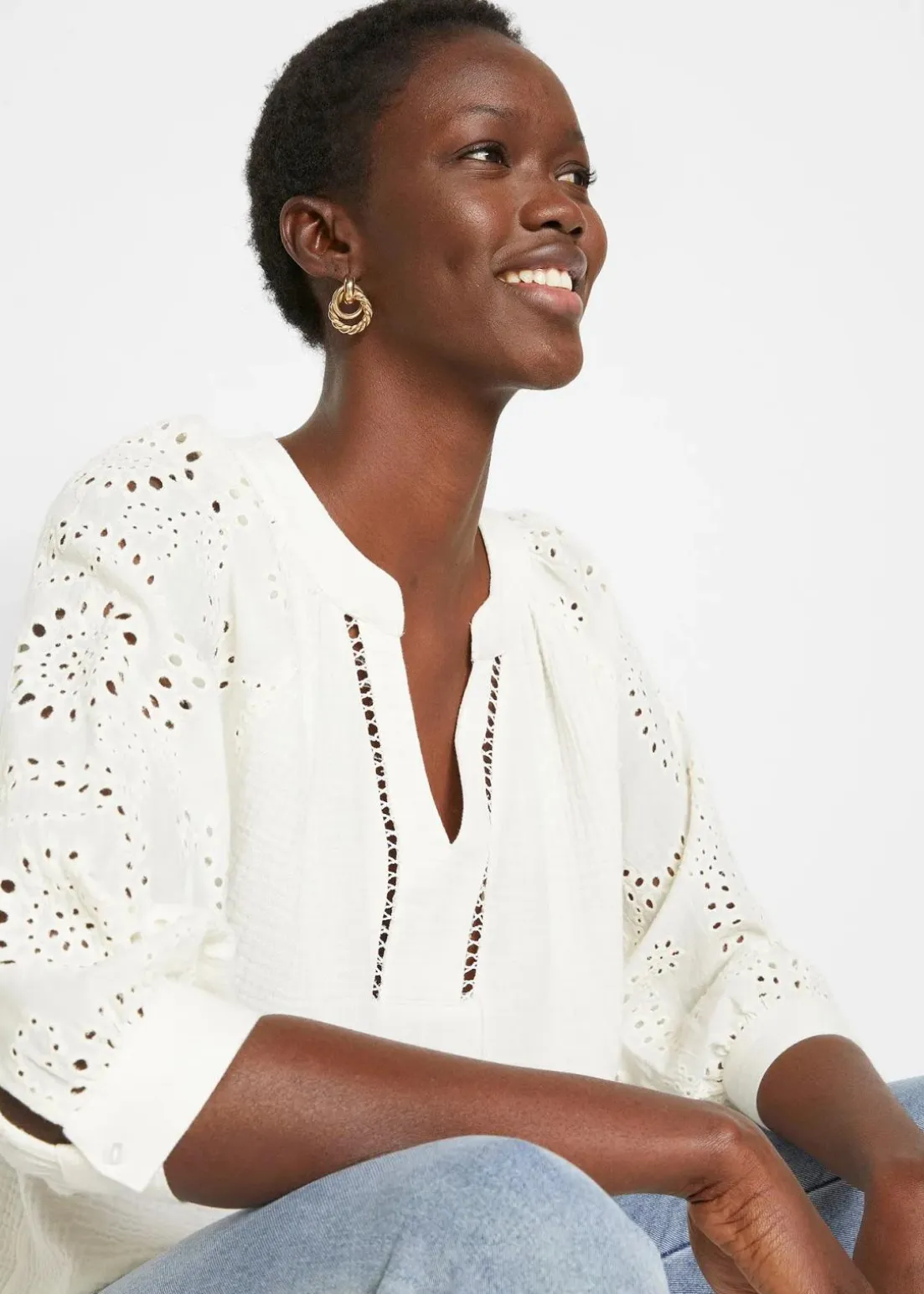 Schöne Musselin-Tunika mit modischer Lochstickerei