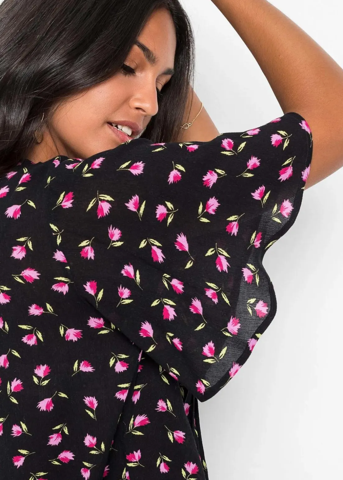 - Passformvorteile:betont das Dekolleté, hüftbedeckend, umspielt den Bauch, umspielt die Oberarme