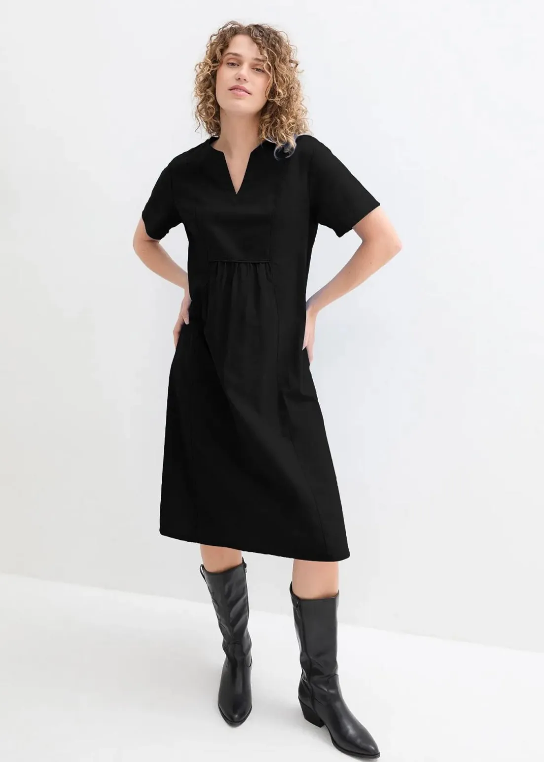 Kniebedeckendes Tunika-Kleid umspielt mit ihrer Passform die Silhouette