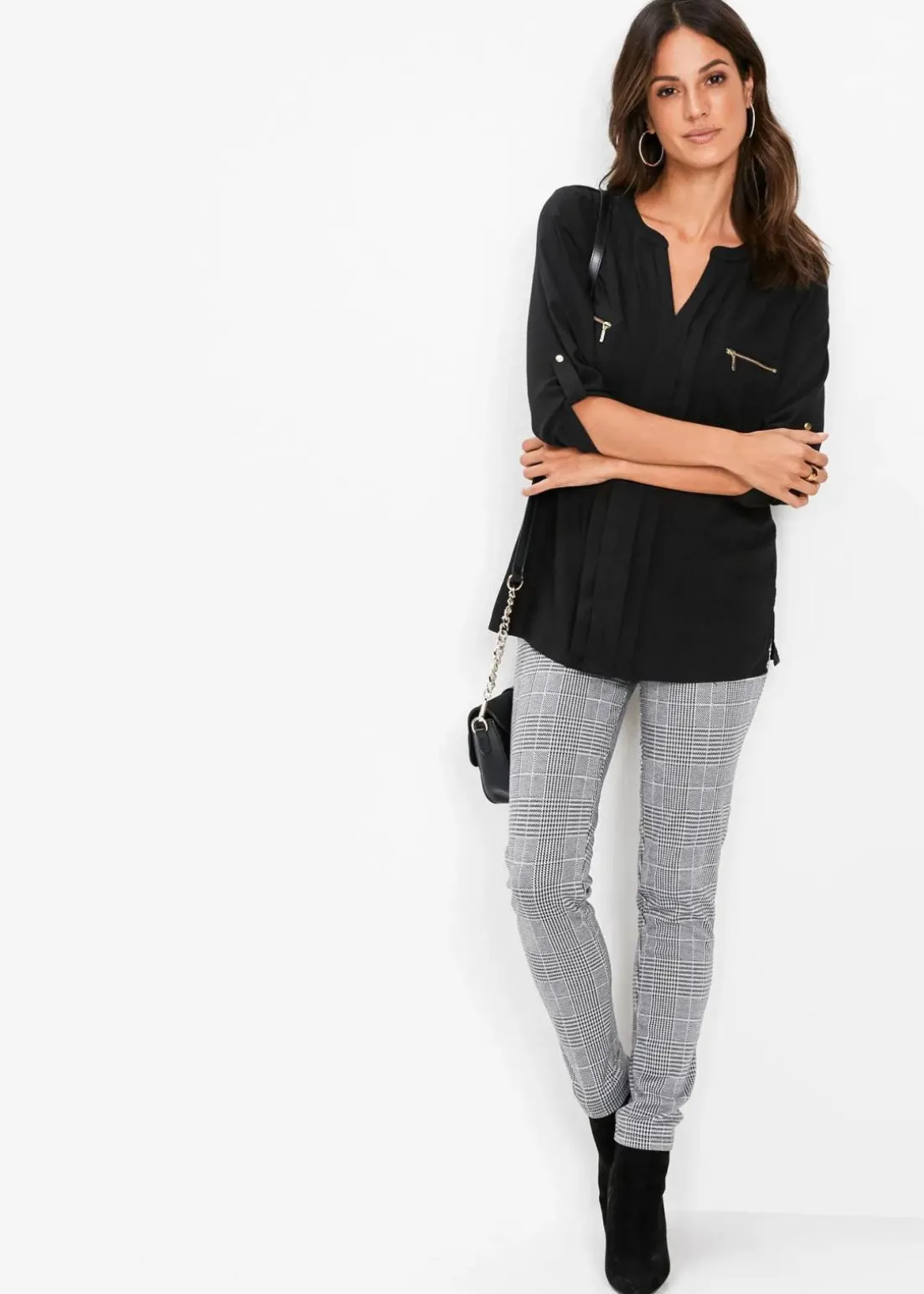 Ansprechende Tunikabluse mit eingelegten Falten und dekorativen Brusttaschen