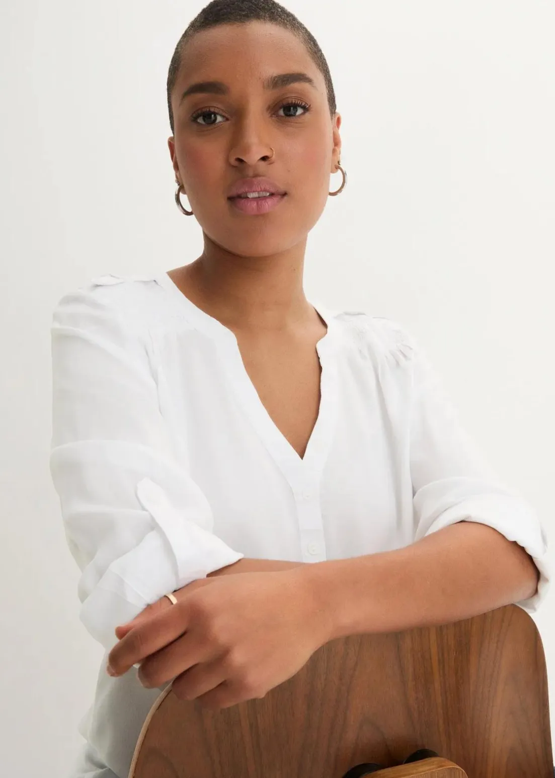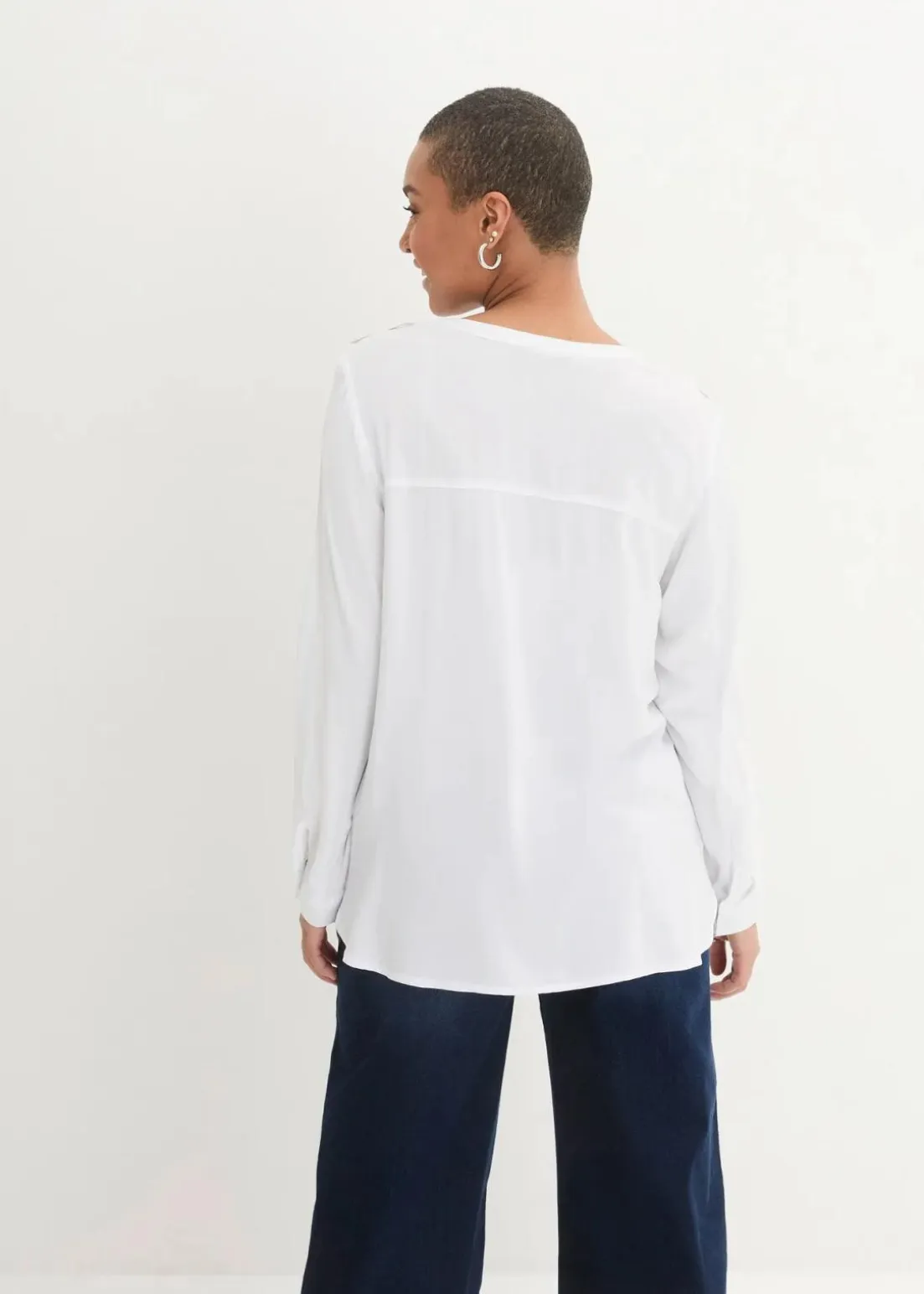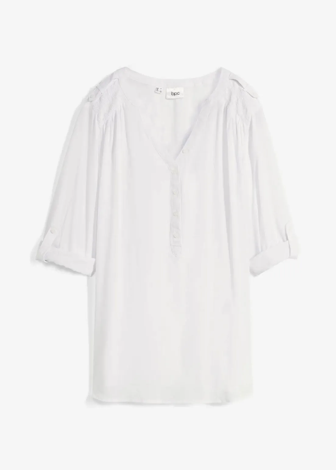 Blusentunika mit langen Ärmeln, Rundsaum und Knopfleiste
