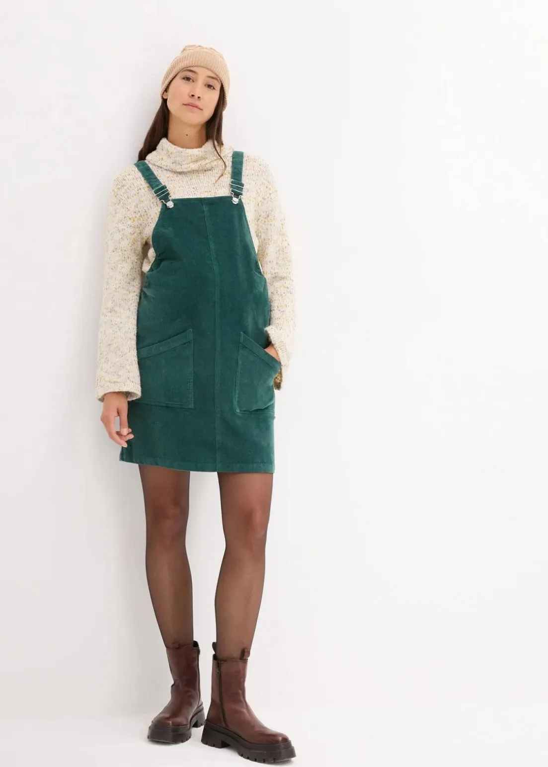 Kleid aus weichem Baumwollcord mit Elasthan. Mit verstellbaren Trägern und Taschen auf der Vorderseite.