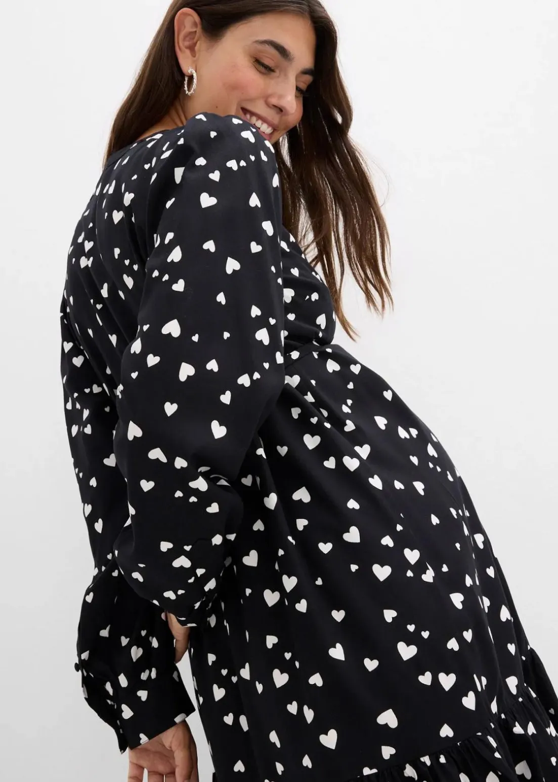 Blusenkleid mit Herzdruck für die Schwangerschaft und danach