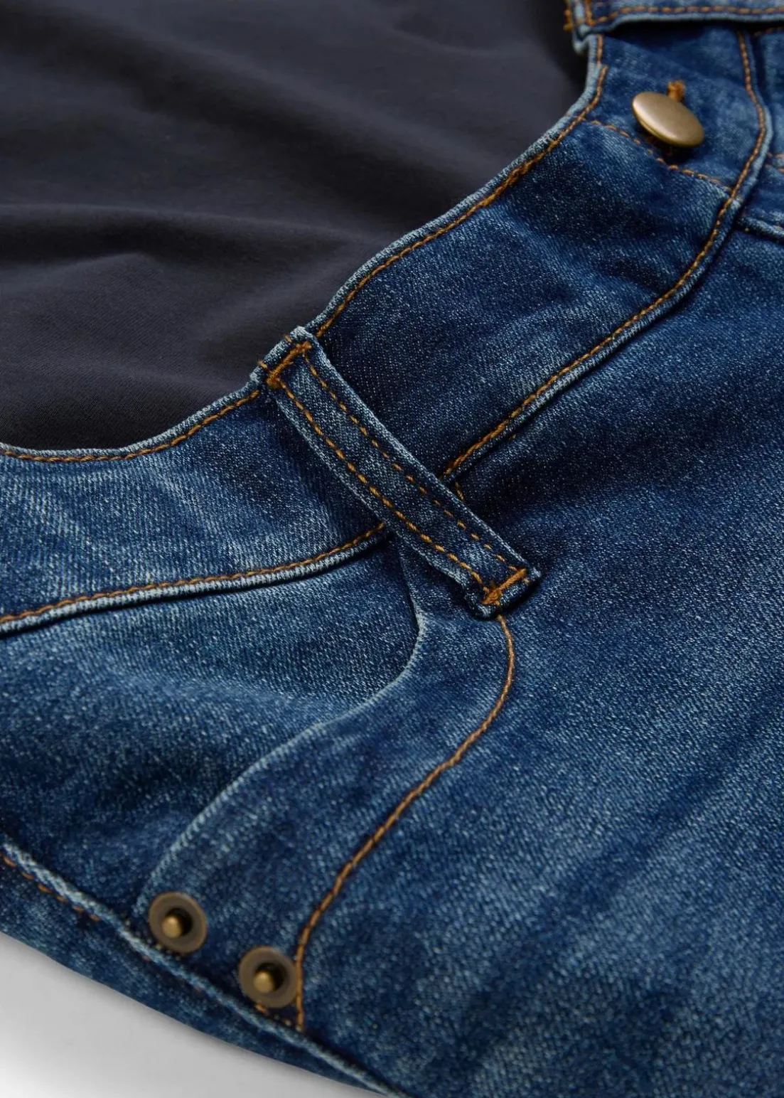 Knöchellange 4-Pocket-Jeans mit Umschlag aus einer Baumwollmischung mit Stretch für einen guten Tragekomfort. Tiefsitzender Bund mit einem verdeckten und verstellbaren Gummizug, sodass sich die Jeans dem jeweiligen Schwangerschaftsmonat anpassen lässt. Bequeme Passform von Hüfte bis Oberschenkel mit einem schmalen Bein. Der breite, angesetzte Jersey Bund aus Baumwolle sorgt für eine optimale Passform am Bauch.