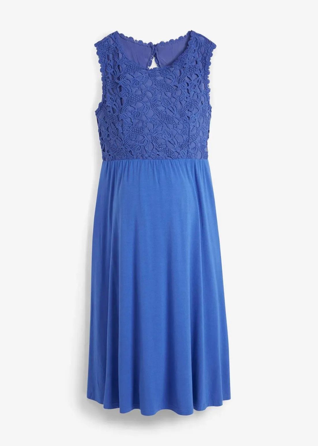 Umstandskleid aus Viskose mit etwas Stretch für ein angenehmes Tragegefühl, verziert mit elastischer Spitze am Oberteil und breiten Spitzenträgern am Rücken, die mit einem Knopf geschlossen werden. Der untere Rücken ist mit elastischem Smock ausgestattet, der für eine flexible Passform sorgt. Der Rock ist in einer leichten A-Linie geschnitten und schafft eine schmeichelhafte Silhouette.
