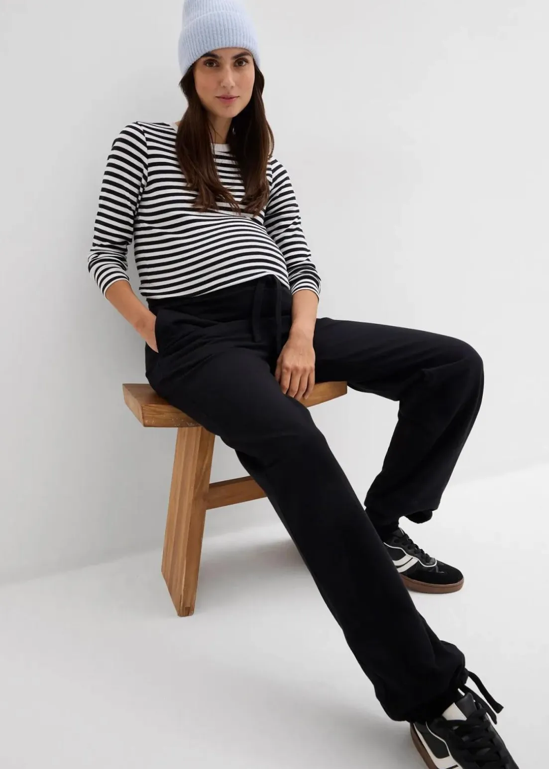 Extra bequeme Umstandshose aus weichem, leicht angerautem Sweatstoff aus reiner Bio-Baumwolle. Die Hose ist mit verstellbaren Kordelzügen am Hosensaum versehen, sodass sich die Saumweite eng oder weit tragen lässt. Das hohe, extra elastische Bauchband gibt dem Bauch Halt, ohne ihn einzuengen. Außerdem ist es mit einem verstellbaren Gummibund ausgestattet, sodass sich die Hose dem jeweiligen Schwangerschaftsmonat anpassen lässt. Mit dezenten Seitentaschen.