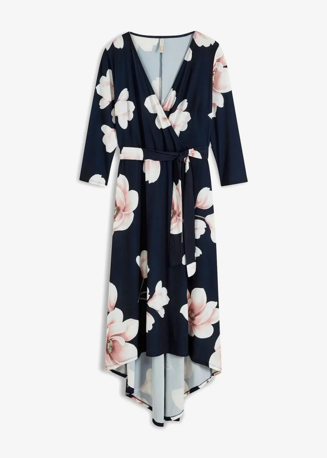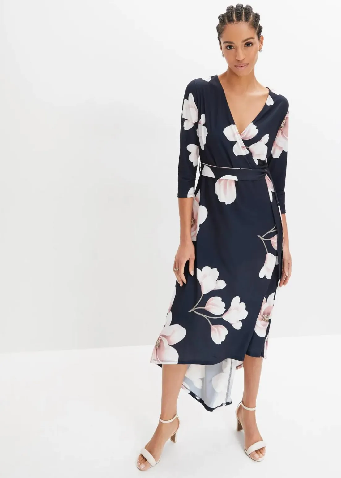 Dieses aparte Kleid von BODYFLIRT betont geschmackssicher das Dekolleté und die Waden. Das feminine Midikleid bezaubert mit attraktivem Blumenmuster, asymmetrischem Saum und raffinierter Wickeloptik. In der Taille bringt ein schmales Bindeband die Körpermitte ansprechend zur Geltung. Das lange Vokuhila-Kleid mit Bindegürtel sieht zu eleganten Schuhen mit hohem Absatz fantastisch aus.