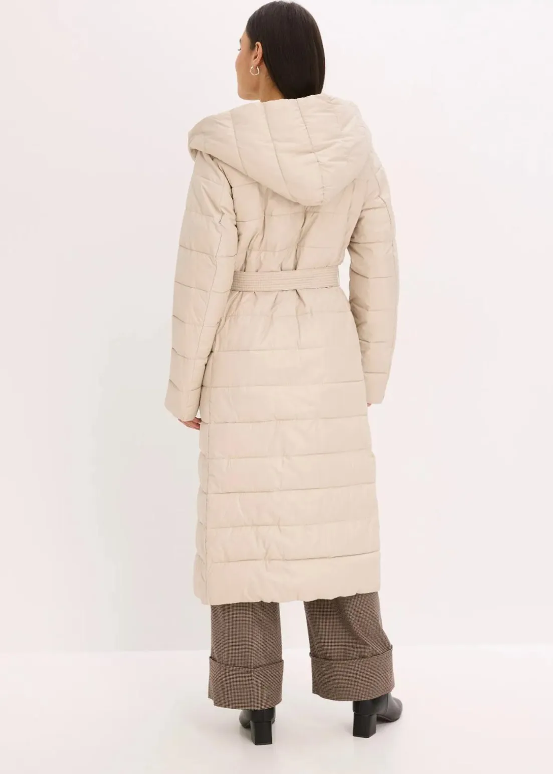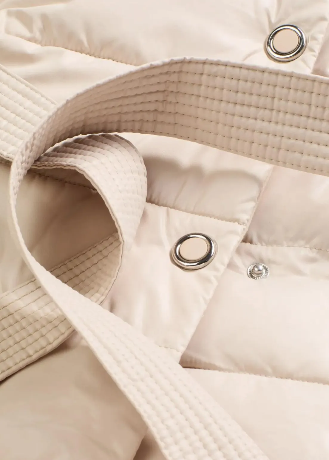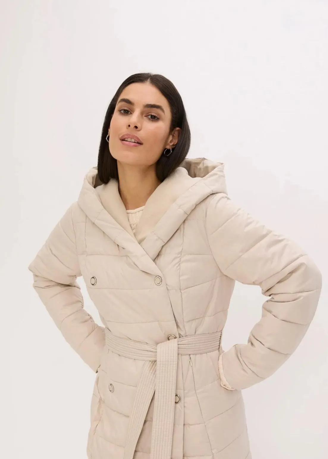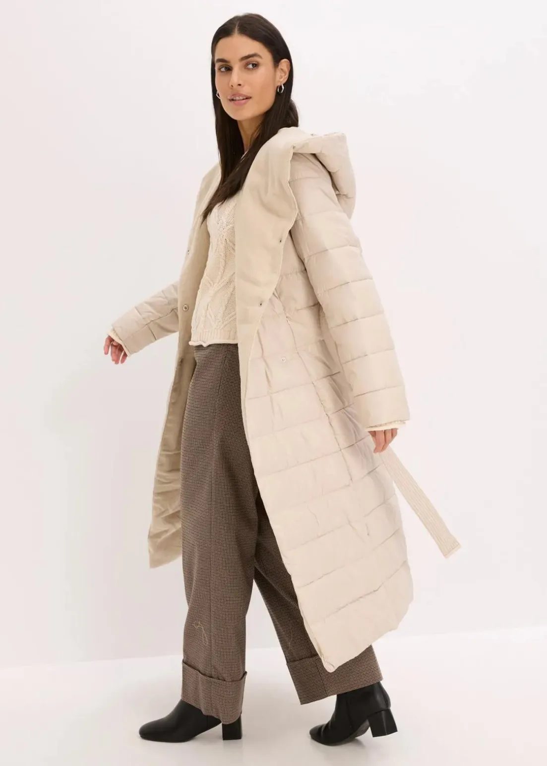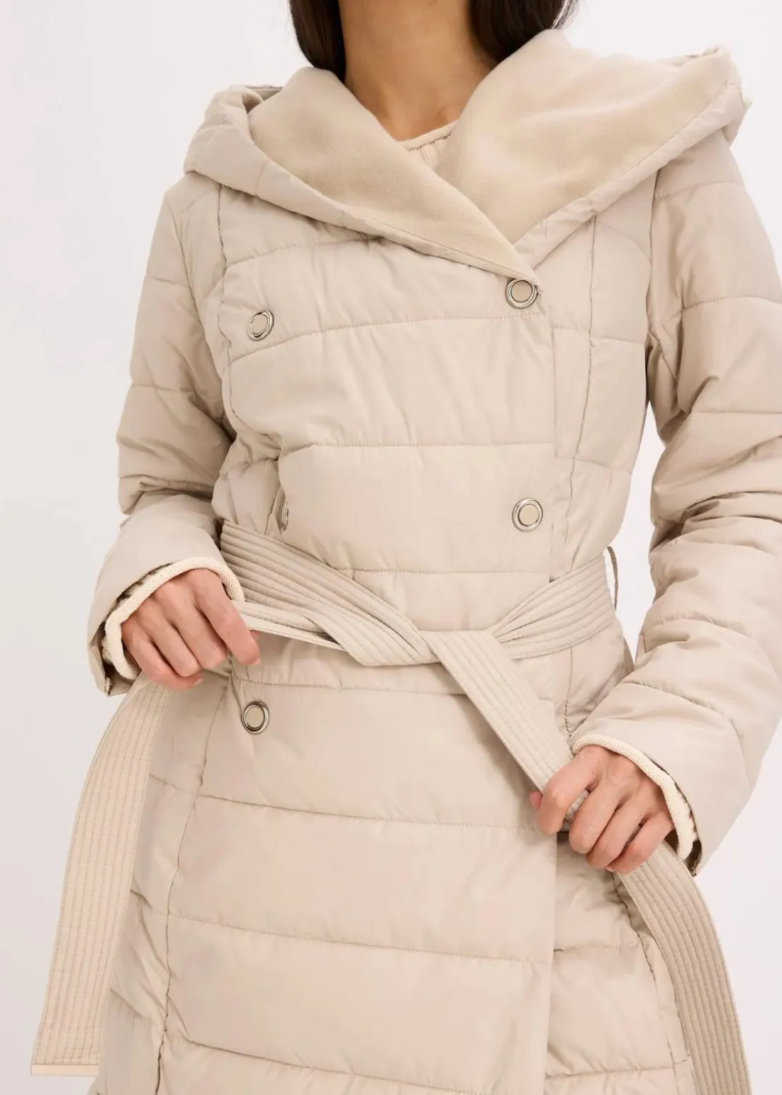 schöner Steppmantel mit Wollimitat Besatz und Bindegürtel (2-tlg.)