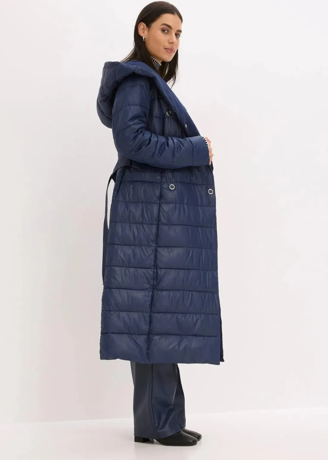 schöner Steppmantel mit Wollimitat Besatz und Bindegürtel (2-tlg.)