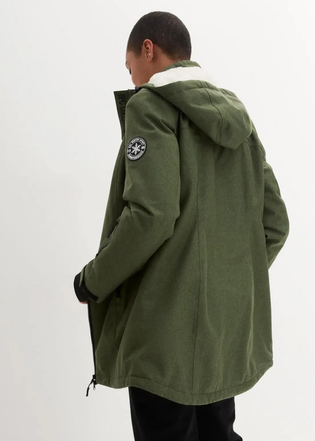 Winddichte Regenjacke mit abnehmbarer Kapuze, Teddyfleece im Kragen und in der Kapuze