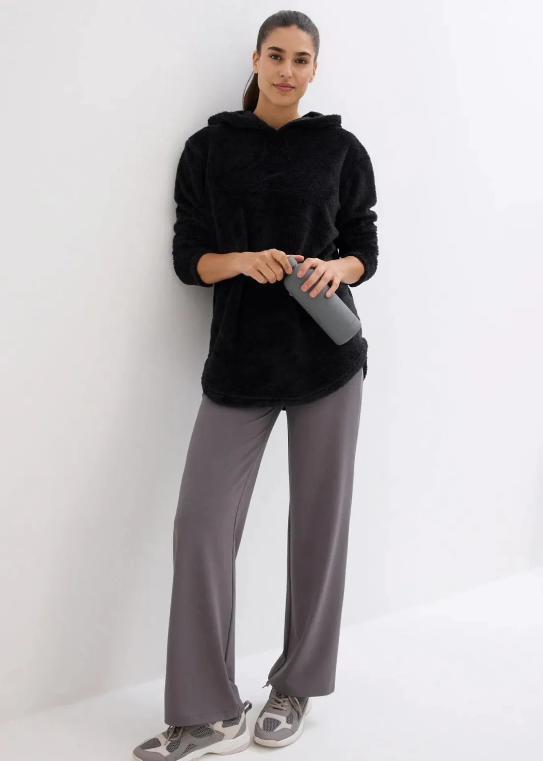 Oversized Longpullover aus Teddy-Fleece, hinten länger