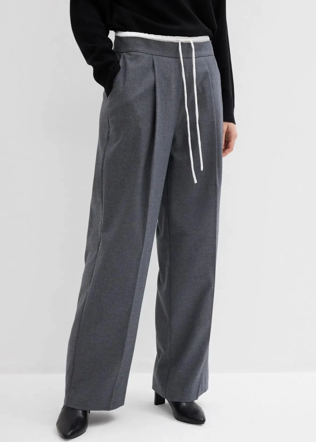Hose mit weitem Bein und kontrastfarbigen Doppelbund mit Zip Fly und Knopf