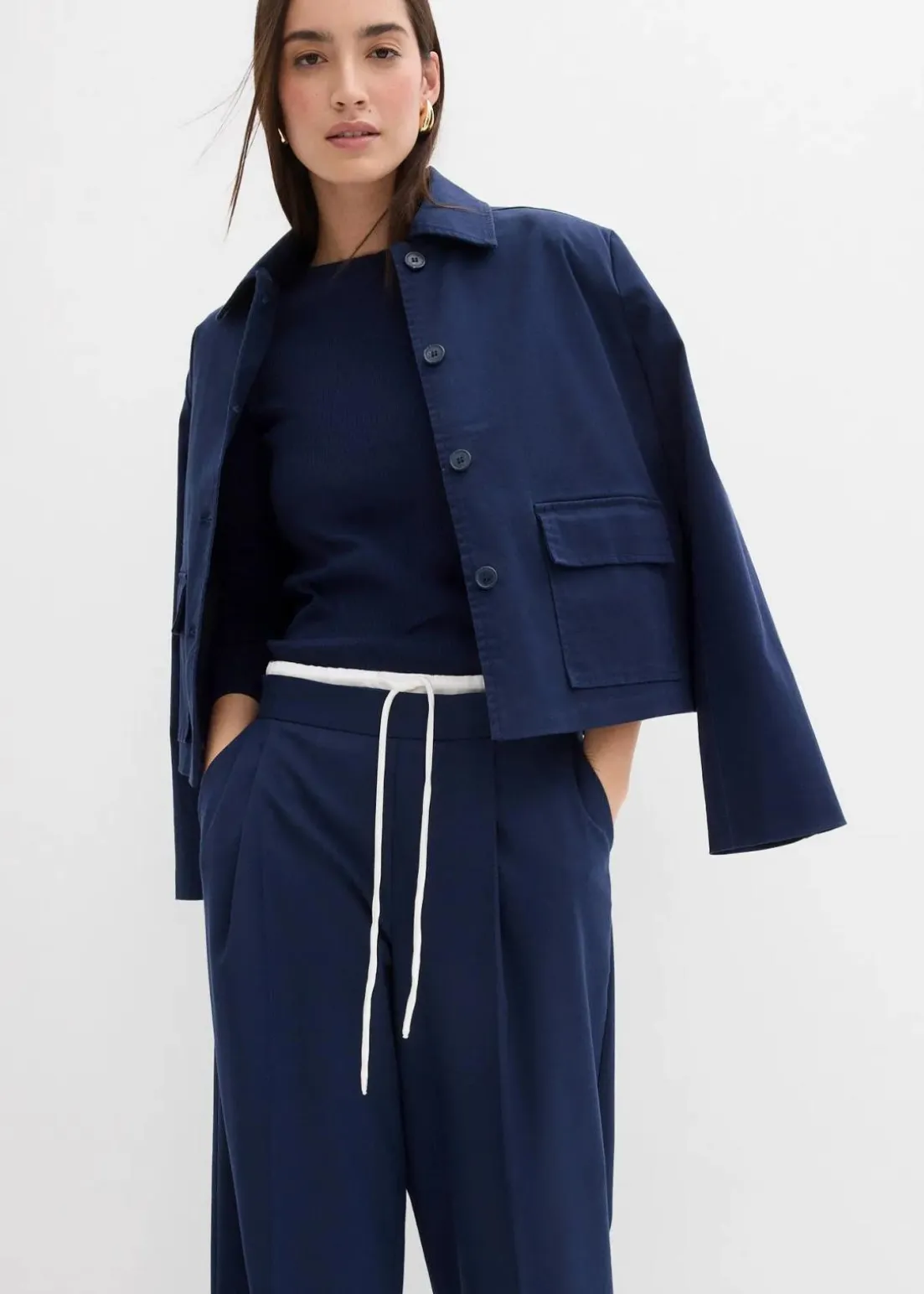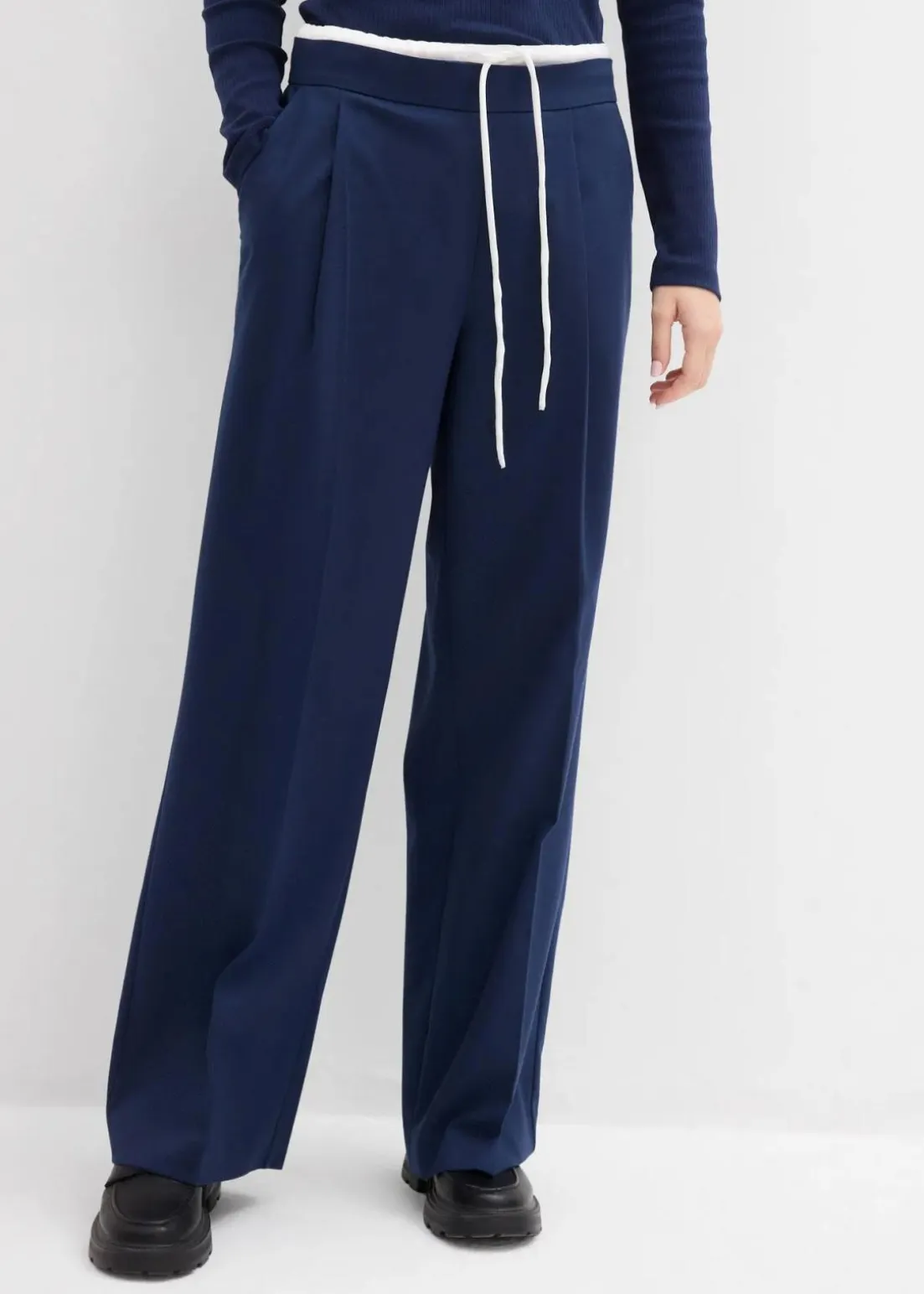 Hose mit weitem Bein und kontrastfarbigen Doppelbund mit Zip Fly und Knopf