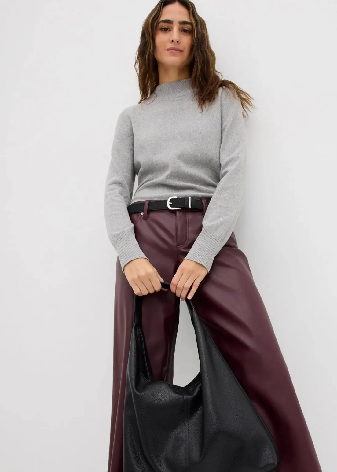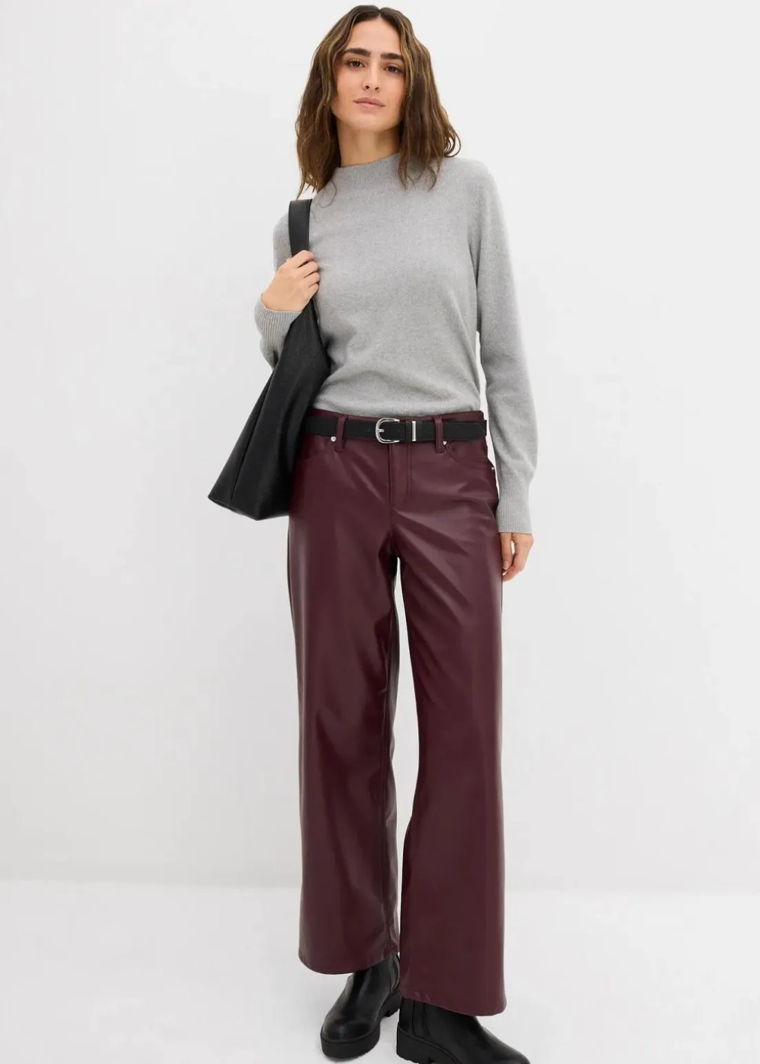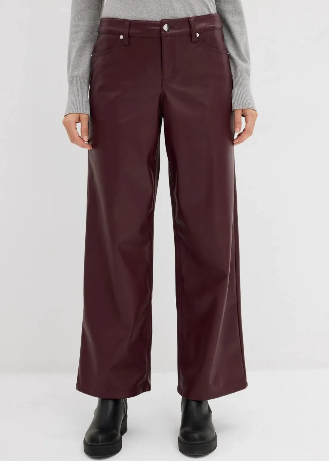 Lässige weit geschnittene Lederimitat-Hose