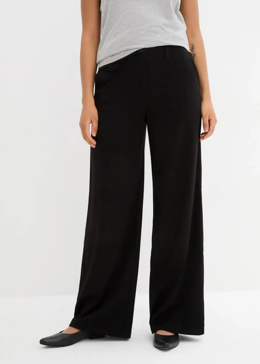 Weit geschnittene Marlenehose mit High-Waist-Bequembund und Bundfalten, sowie coolem Taschendetail