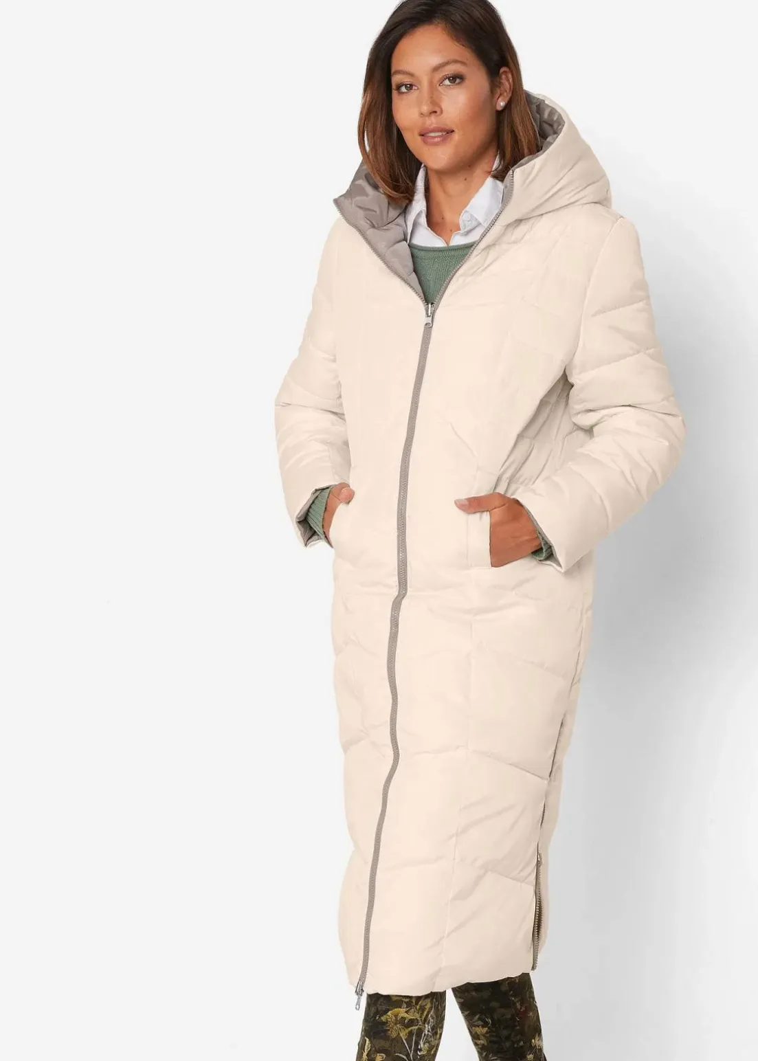 Durch die Wendefunktion ist der modische Steppmantel vielseitig kombinierbar.