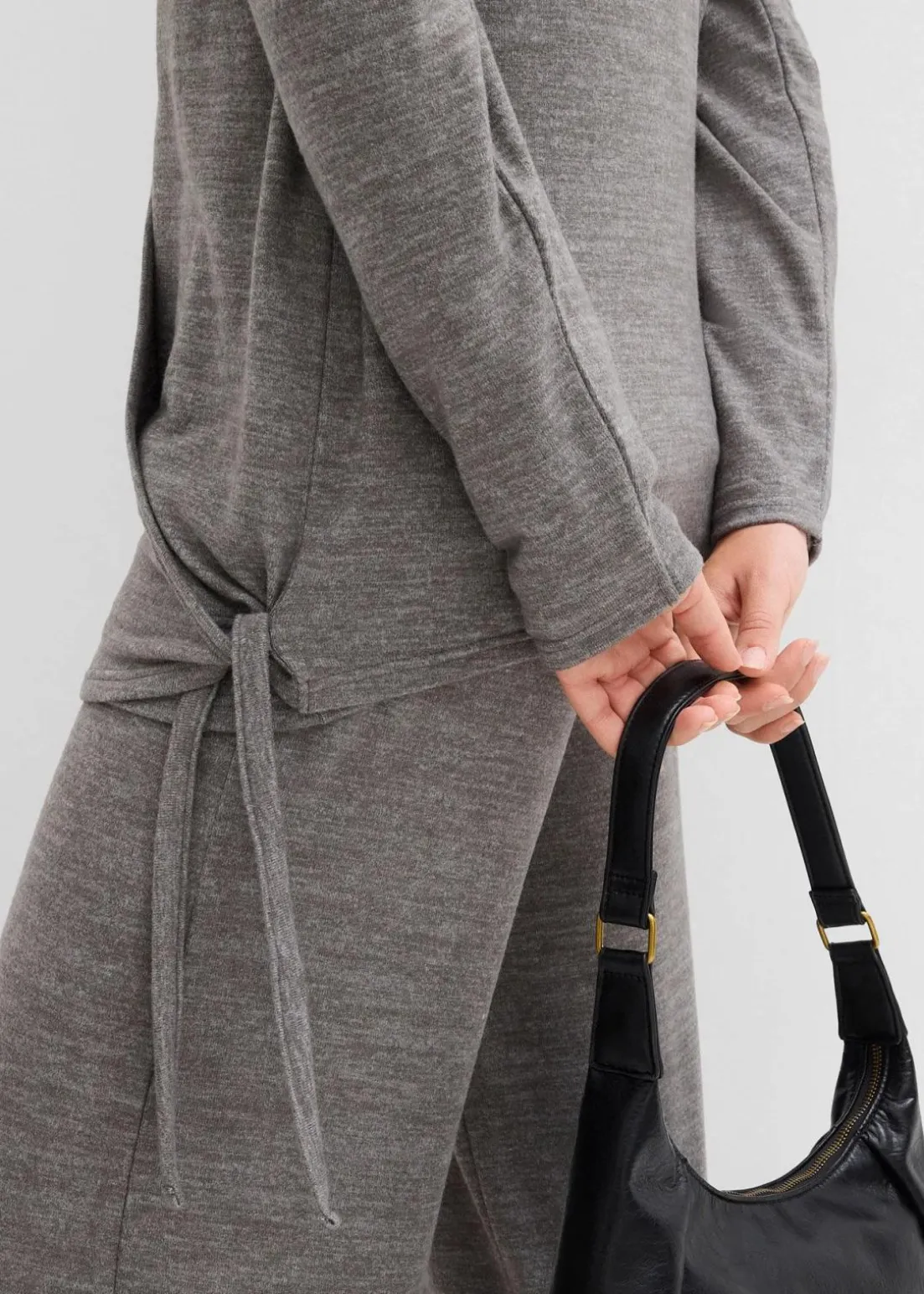 Langärmliger Wickelcardigan mit Schnürung am Saum und zusätzlichem Knopfdetail.