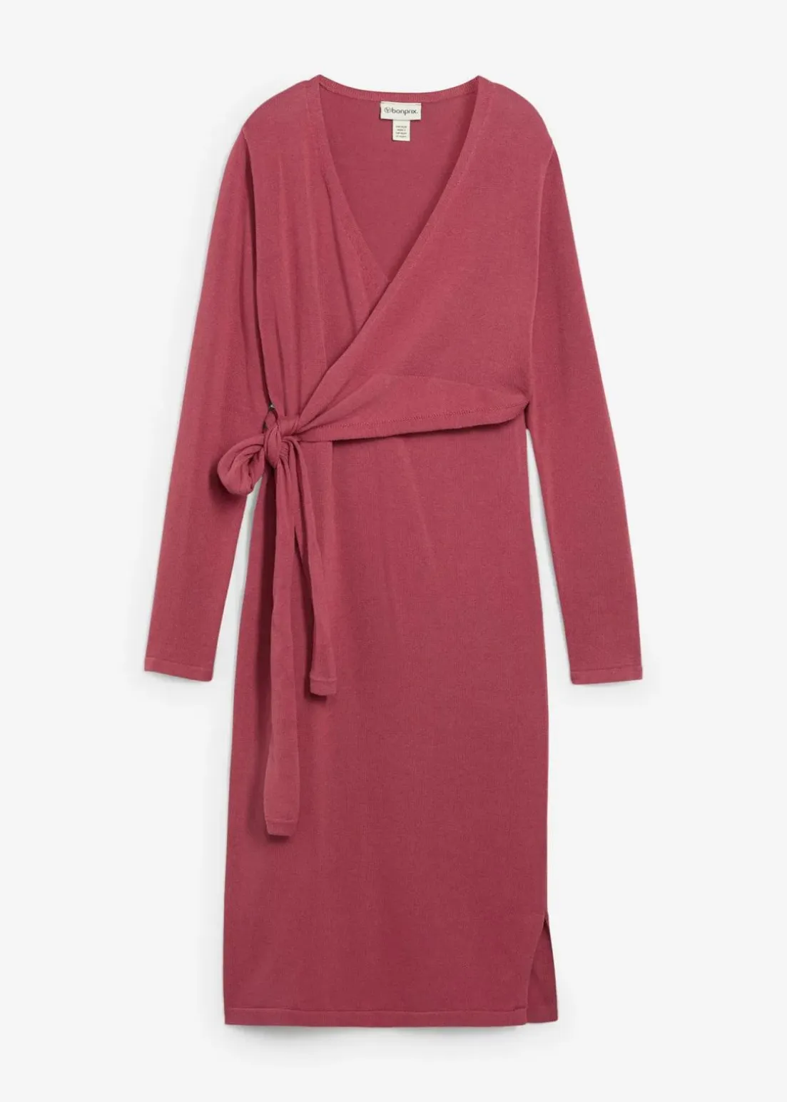 Mittellanges Strickkleid aus reiner, atmungsaktiver Bio-Baumwolle mit V-Ausschnitt. Bindebänder ermöglichen die individuelle Weitenregulierung, sorgen für eine schmeichelnde Silhouette und machen das Kleid auch nach der Schwangerschaft tragbar. Der Schnitt erlaubt einfaches Stillen sowie bequemes An- und Ausziehen. Extra lange Ärmel und kleine Seitenschlitze am Saum runden das Design ab.