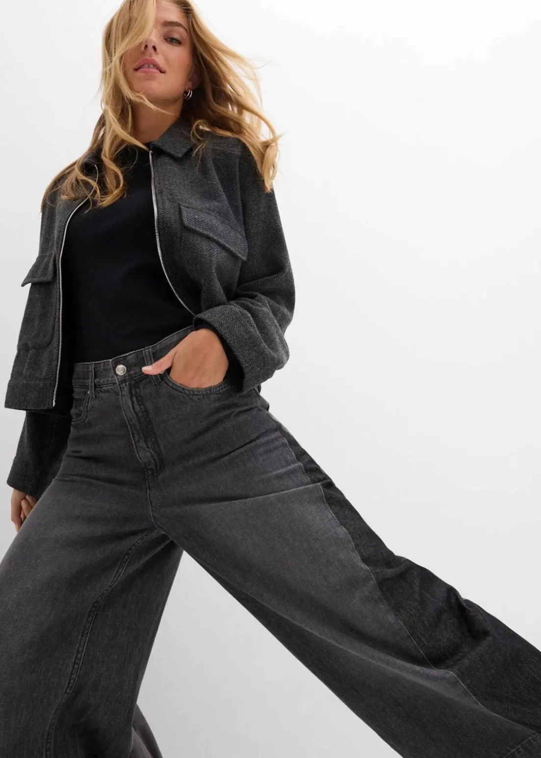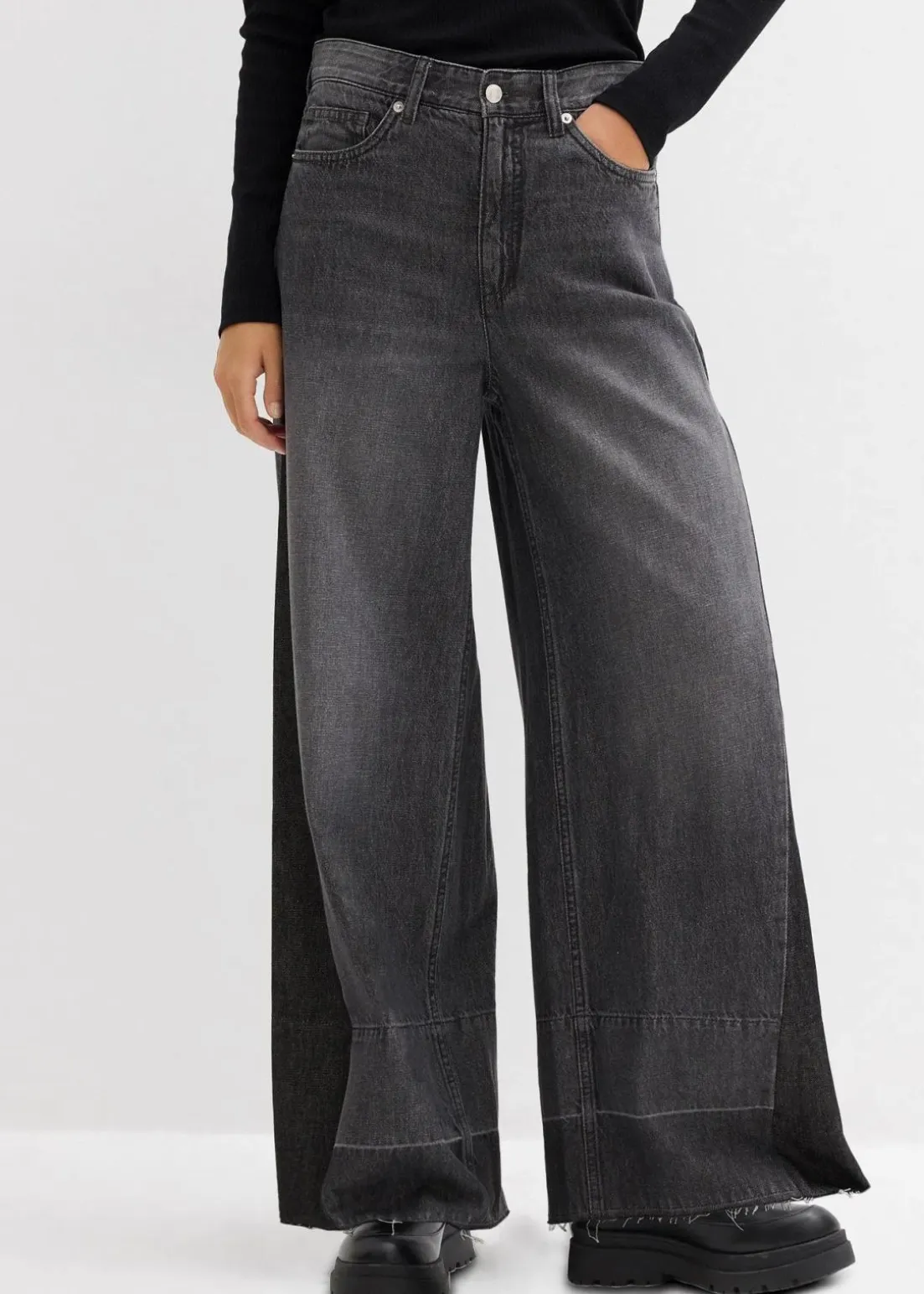 Wide-Leg-Jeans High Waist mit Einsatz