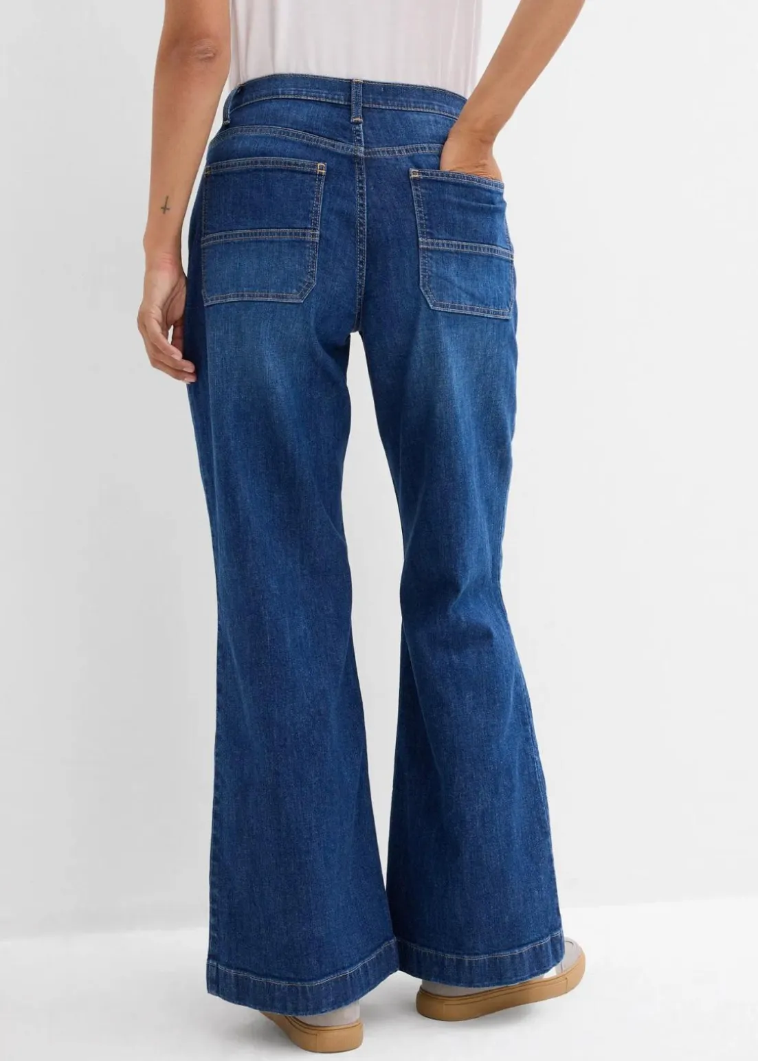 Wide-Leg-Jeans Mid Waist mit aufgesetzten Taschen