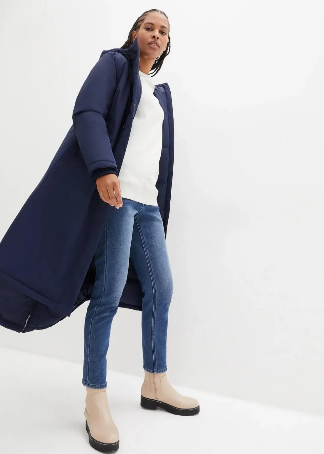 Langer Wintermantel mit Innensteppung