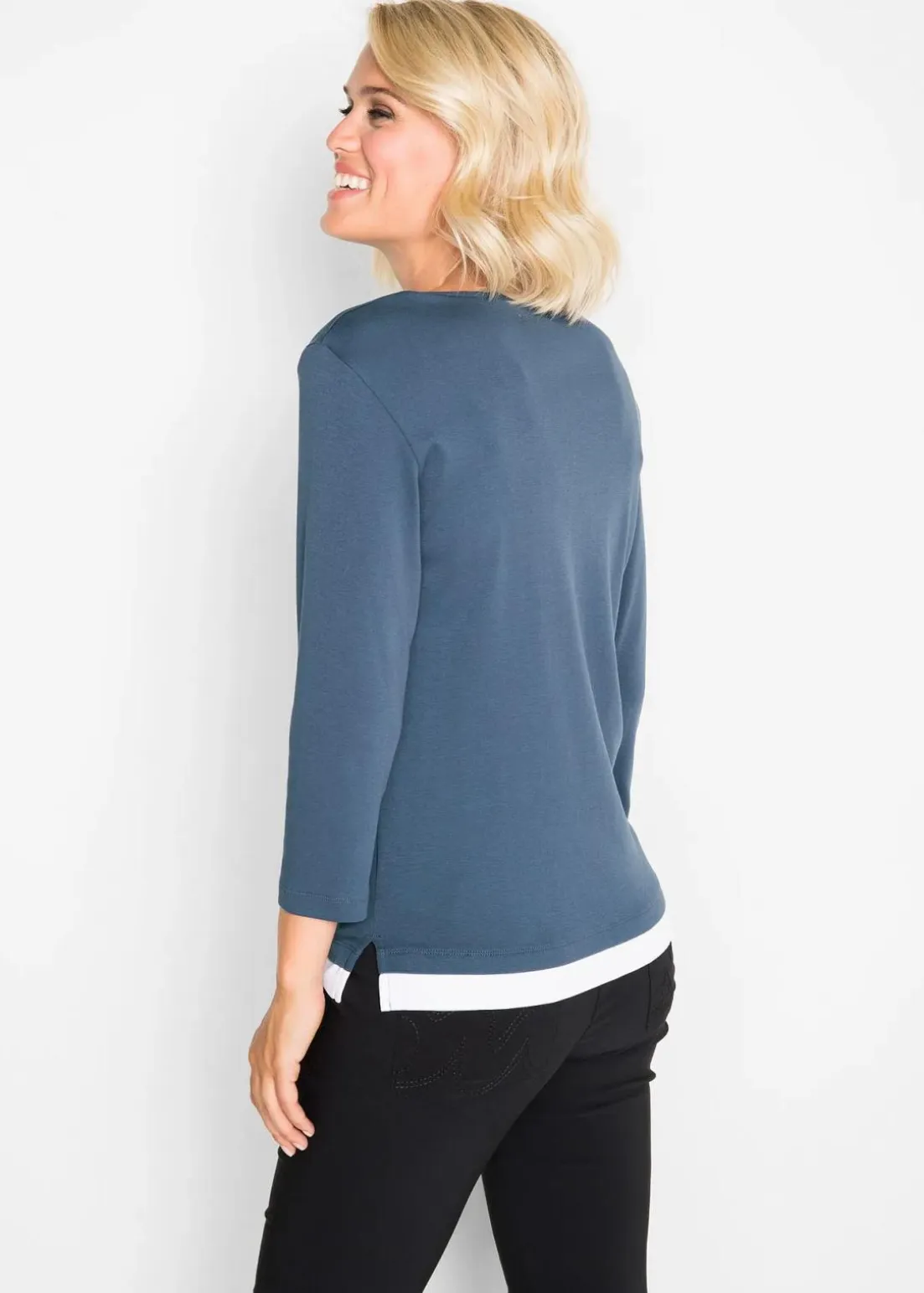 Bequemes 2-in-1-Shirt mit Druck und 3/4 Arme aus Baumwolle