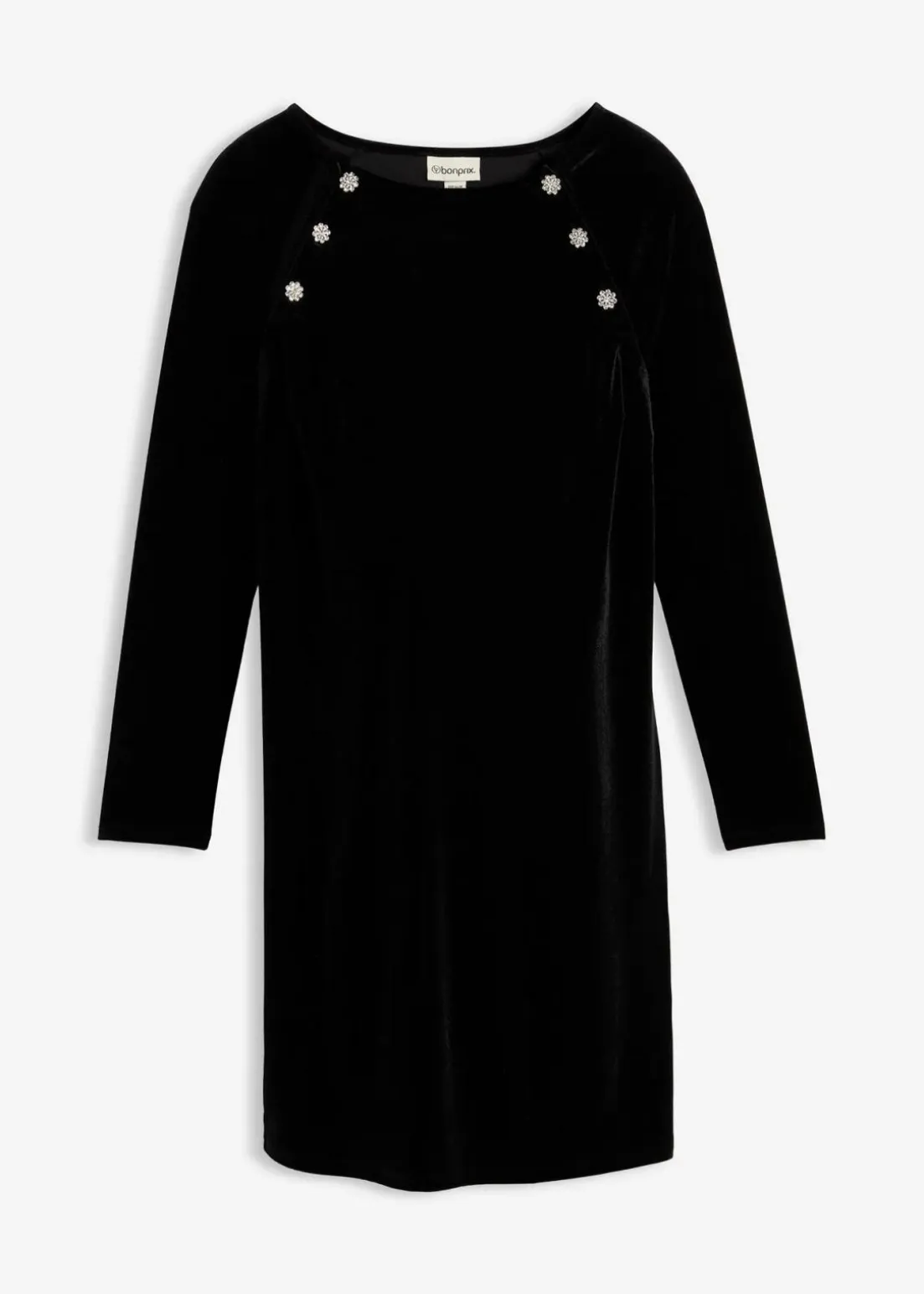 Langärmeliges Kleid aus weichem Jersey-Samt mit Rundhalsausschnitt in knieumspielender Länge. Die Raglanärmel sind mit dekorativen Knöpfen versehen, die sich zum Stillen bequem öffnen lassen.
