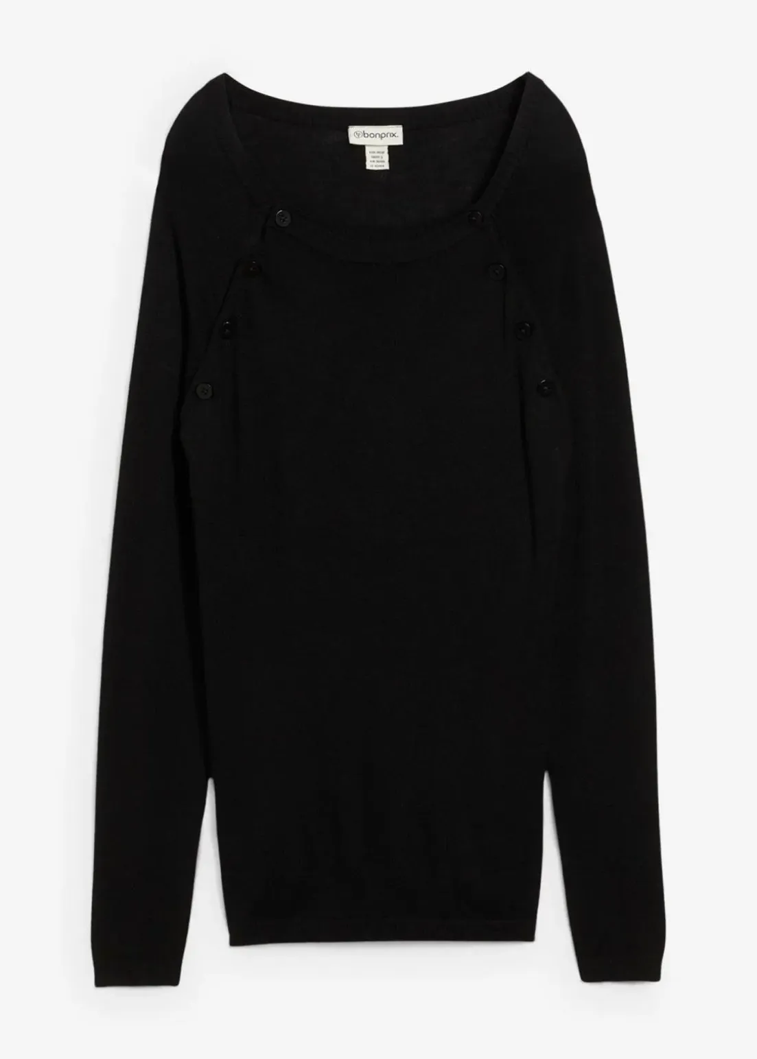 Weicher Pullover mit Rundhals-Ausschnitt in hüftbedeckender Länge und langen Ärmeln. Das Oberteil hat einen Einsatz zum Aufknöpfen. Das Design mit den doppelten Lagen hilft Wärmeverlust zu vermeiden und ermöglicht ein angenehmes und diskretes Stillen für Mutter und Kind.