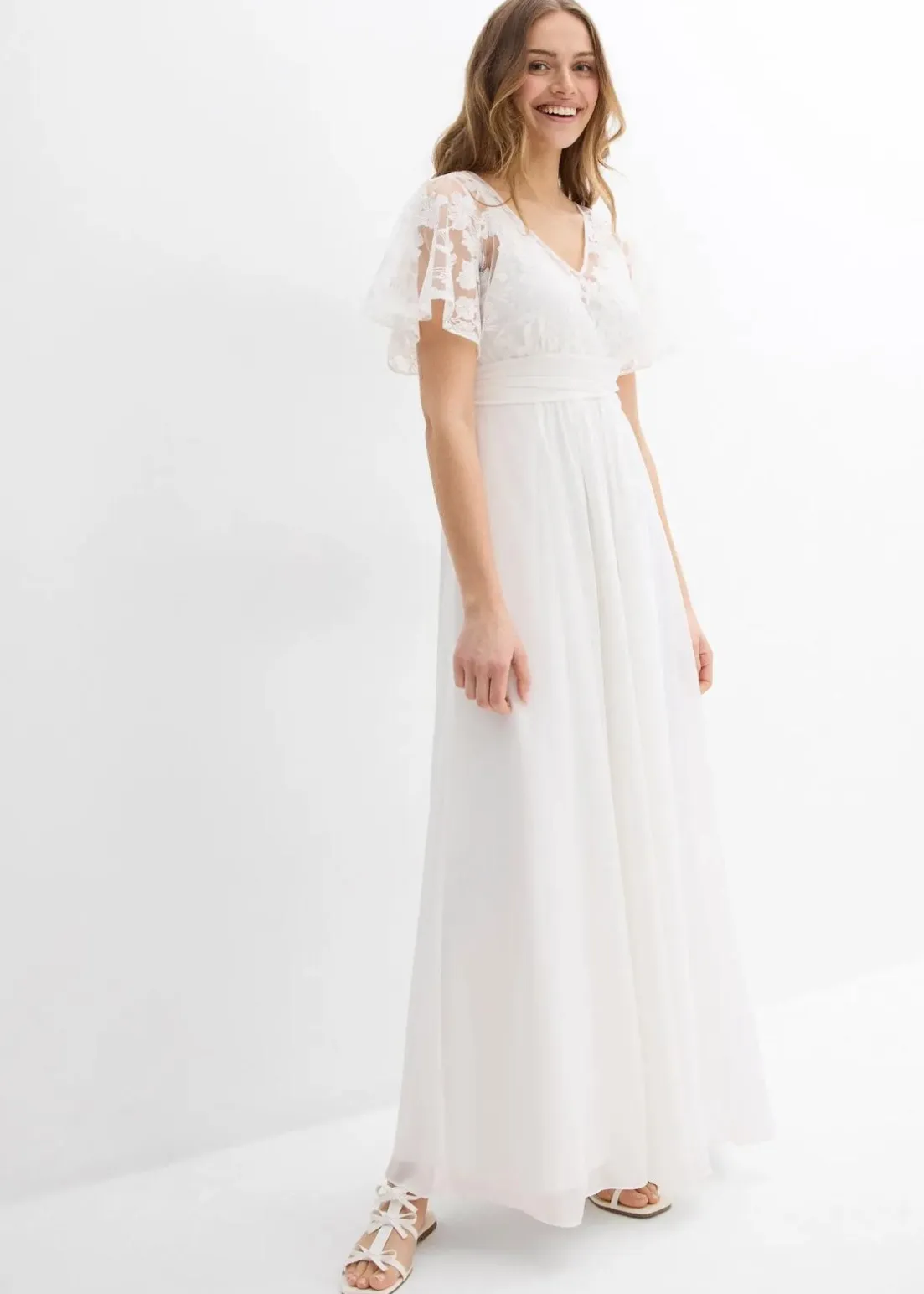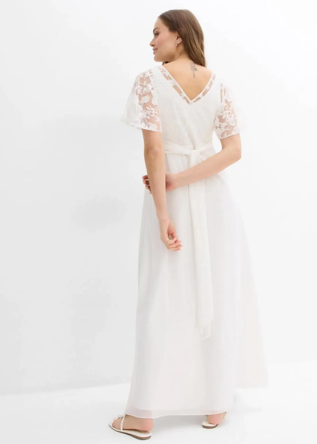 Hochzeitskleid aus Spitze und Chiffon für die Schwangerschaft und danach