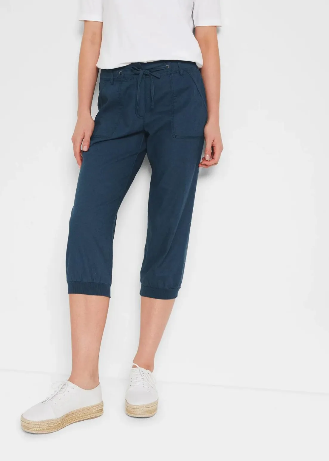 Bequem-geschnittene Hose mit Leinen und Rippbündchen, Loose-Fit