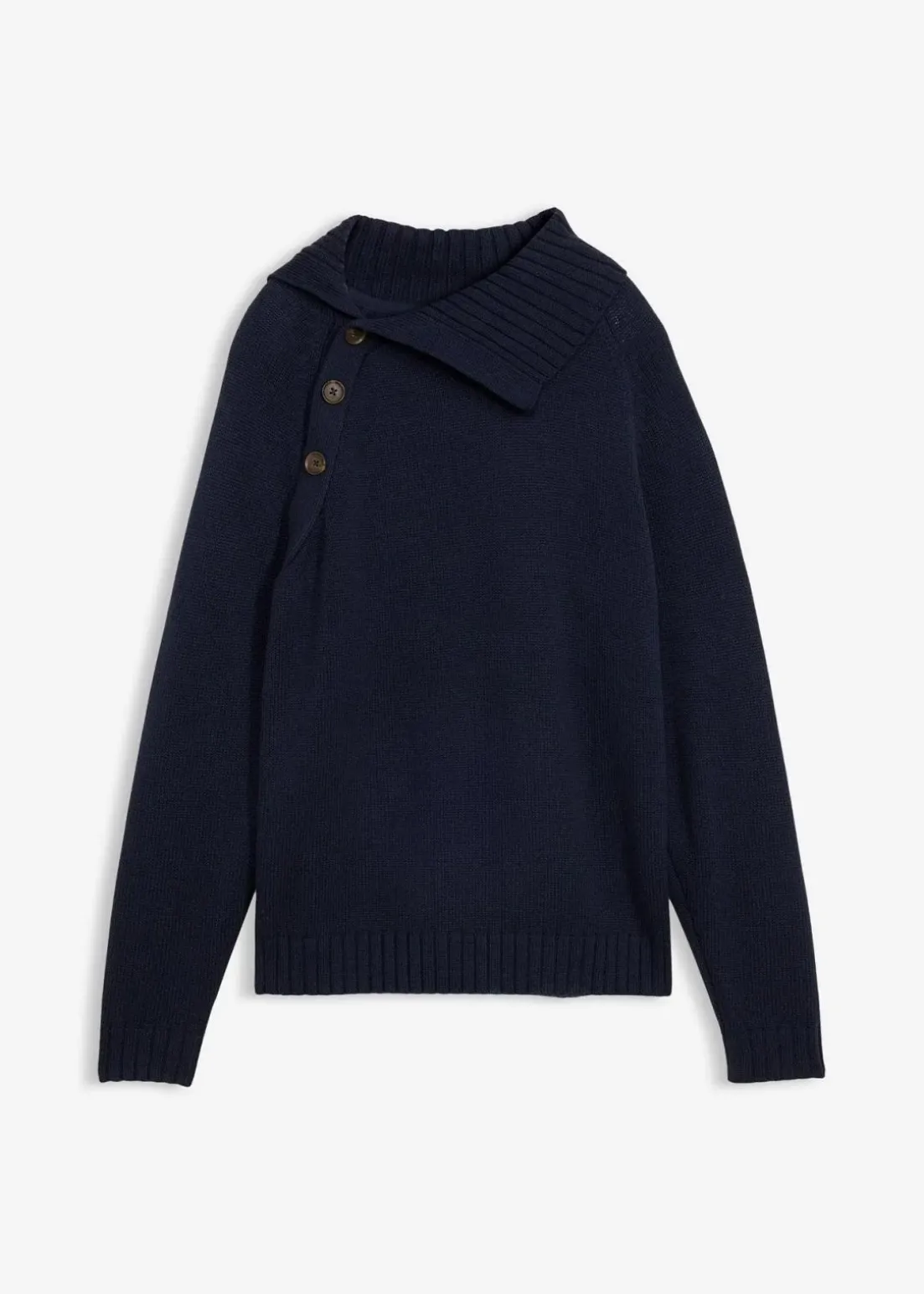 Asymmetrischer Pullover mit modernem Design und schräg verlaufendem, geripptem Kragen