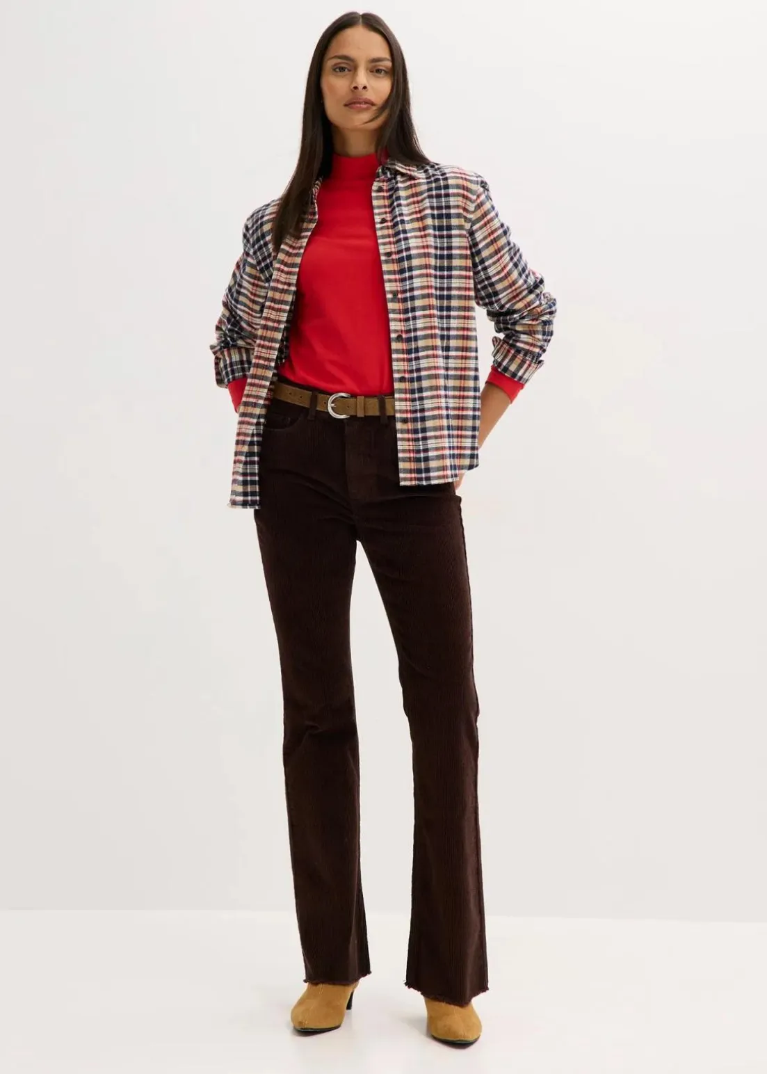 Lässige Cordhose mit ausgestelltem Bein und offenem Saum
