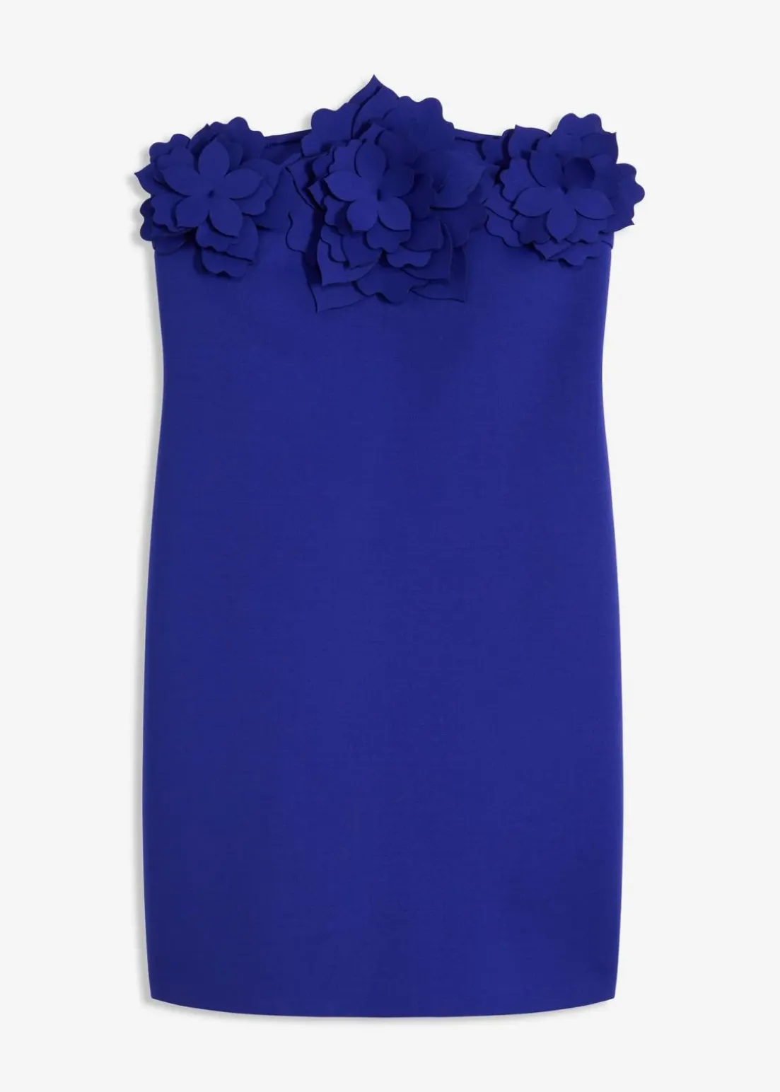 Mondern und feminin: Bandeau-Kleid aus fester Scuba-Qualität mit Blumen-Applikation