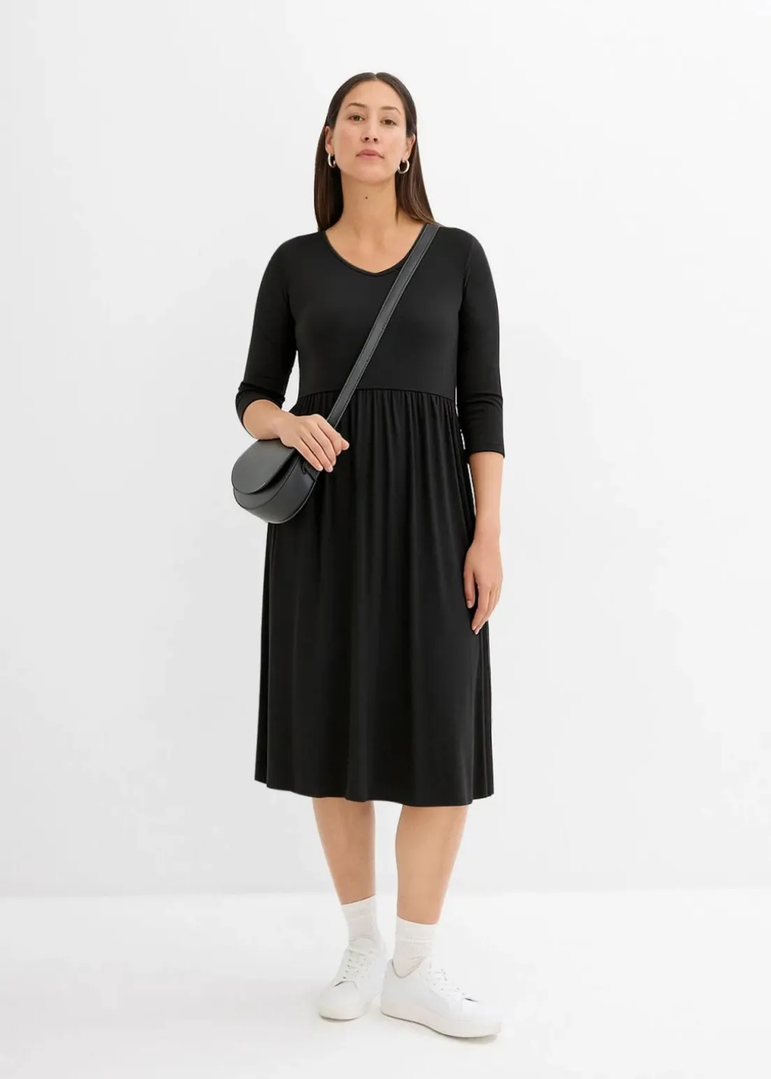 Kniebedeckendes Jerseykleid mit figurumspielendem Schnitt