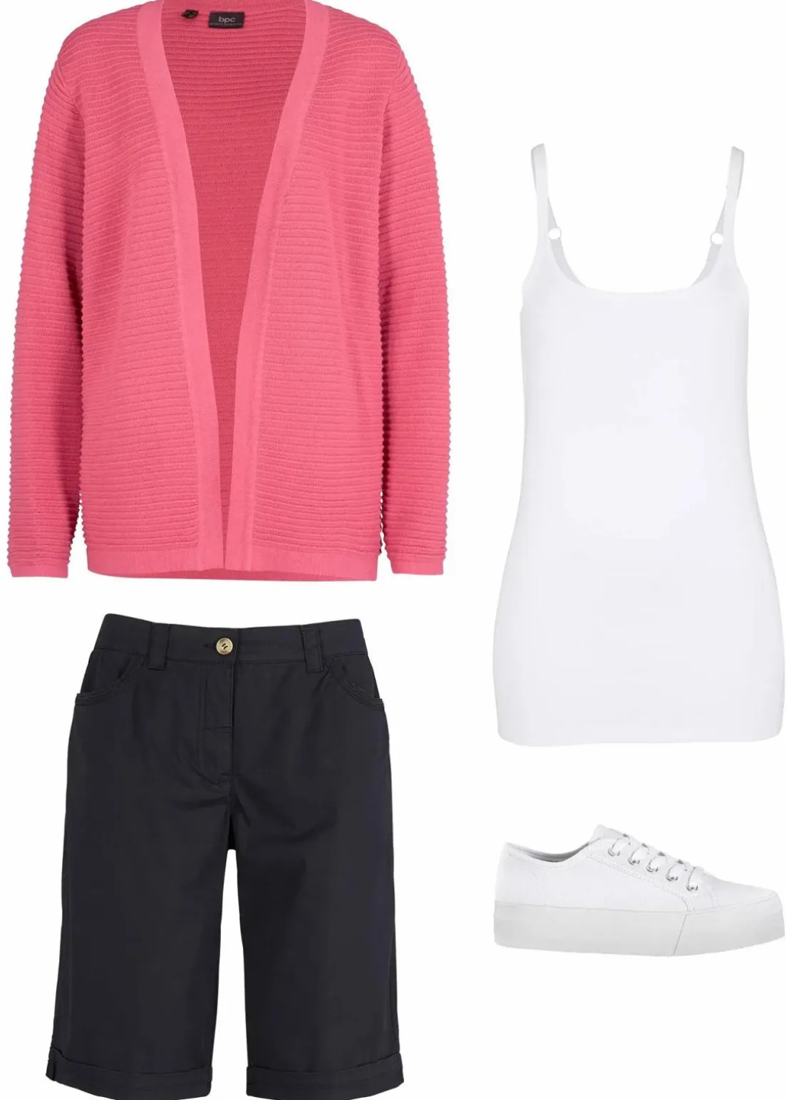 Ein echter Allrounder für die Freizeit – das ist diese legere Papertouch-Bermuda aus der aktuellen Kollektion von bpc. Die komfortable Hose punktet vor allem mit ihrem lockeren weiten Schnitt und ihrem elastischen Bündchen in der Taille.Sie hat zwei Eingrifftaschen an den Seiten und lässt sich mit Knopf und Reißverschluss schließen.