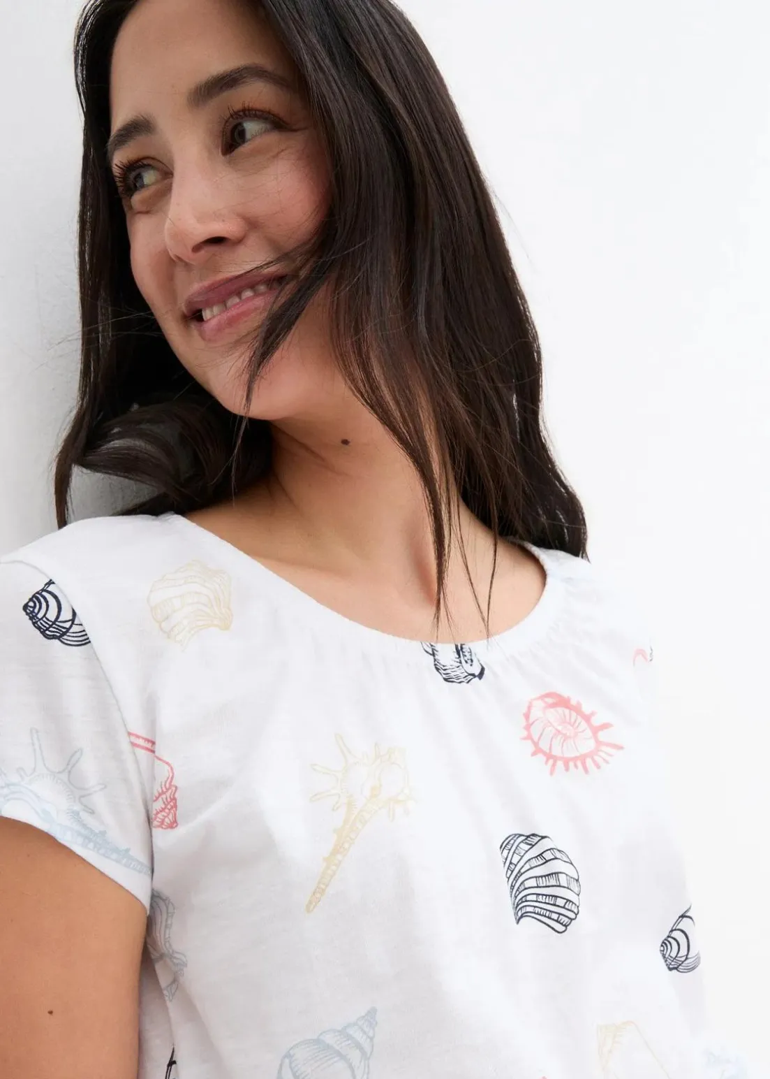 Lockeres Carmen-Shirt mit Muschel-Druck