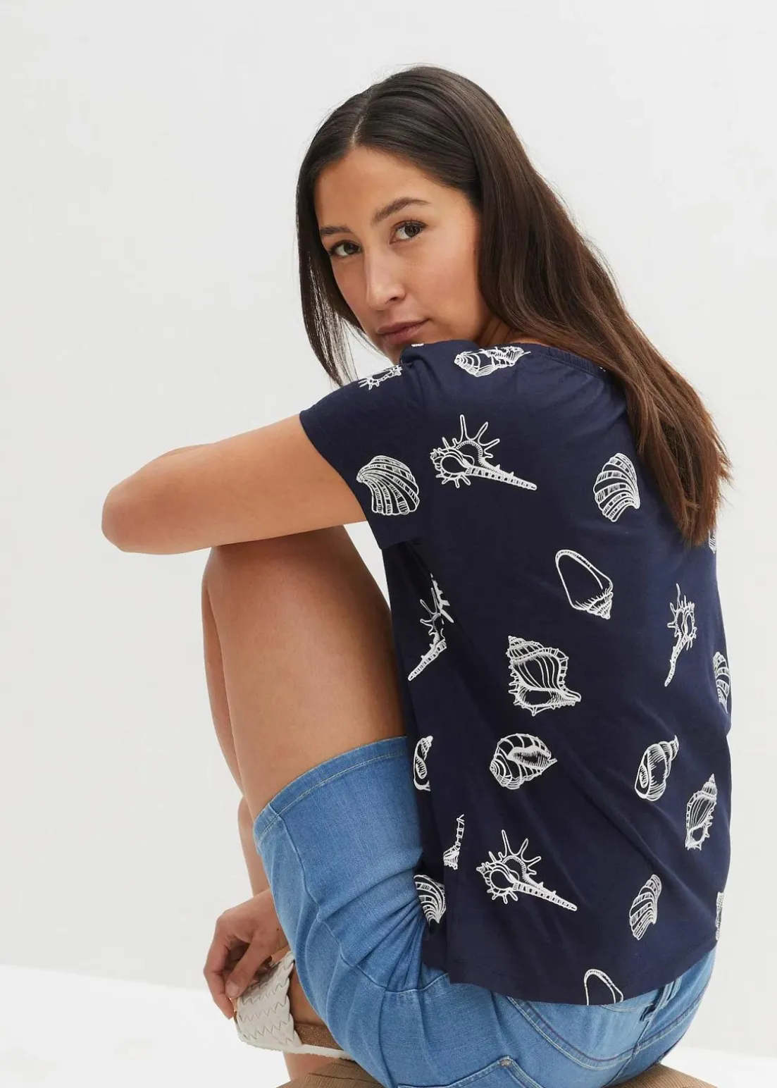 Lockeres Carmen-Shirt mit Muschel-Druck