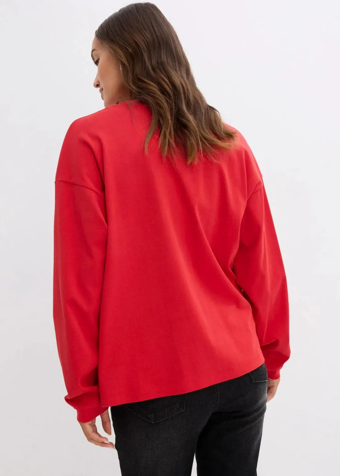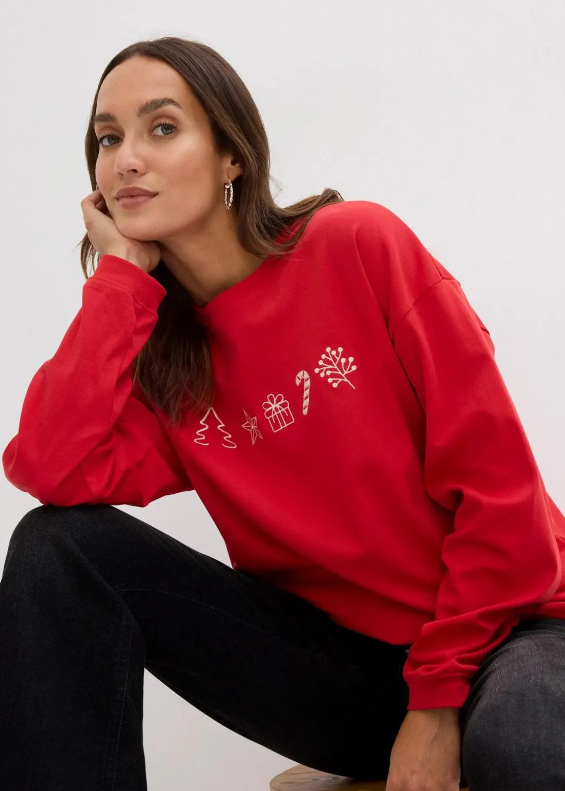 Lässig geschnittenes Langarmshirt mit weihnachtlicher Stickerei