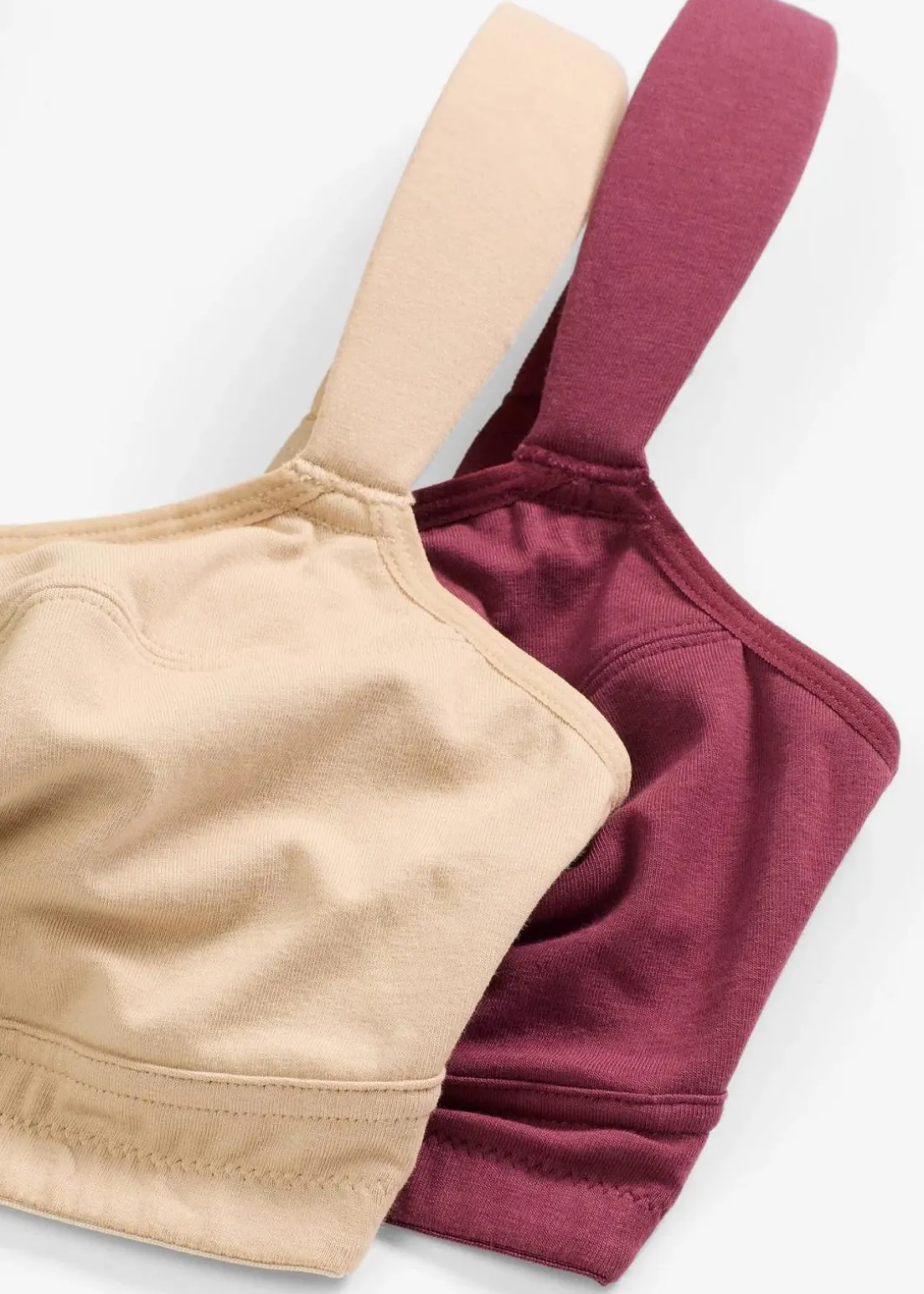 Diesen schlichten BH muss Frau einfach lieben! Er ist aus weicher Bio-Baumwolle ohne Bügel gefertigt und kommt direkt im vorteilhaften Multipack. Formgebende Teilungsnähte und eine cleane Optik verleihen ihm den modischen aber unaufdringlichen Look, während die breiten, verstellbaren Träger und das elastische Unterbrustband den Komfort erhöhen. Zu schließen ist das Wohlfühlwunder über einen Haken-und-Ösenverschluss an der Rückseite und fällt wie die Träger, in größeren Cup-Größen etwas weiter aus.