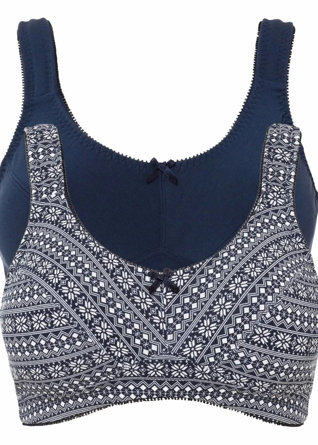 Dieser BH ist bügellos verarbeitet und hat ein Norweger Muster. Breite und gepolsterte Träger sowie Bio-Baumwolle sorgen für ein angenehmes Tragegefühl.