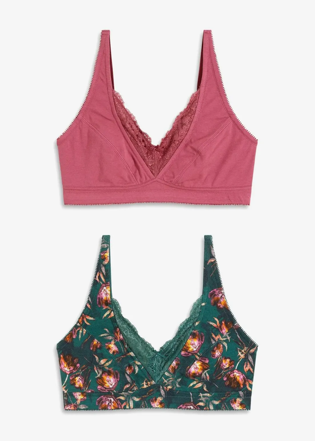 Bügelloser BH mit weicher Bio-Baumwolle und moderner Spitze im praktischen 2er Pack