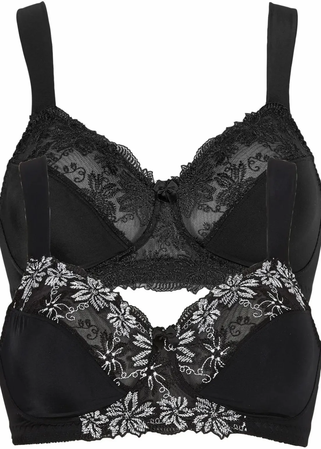 Guter Tragekomfort und gefälliges Design – der geschmackvolle BH vereint beides. Der Steg und das obere Cup sind aus zartem, transparenten Gewebe gefertigt. Eine attraktive Stickerei zieht sich elegant von Cup zu Cup und schmückt auch den Steg. Dieser BH ohne Bügel hat breite, gepolsterte Träger, die die empfindliche Schulterpartie entlasten.